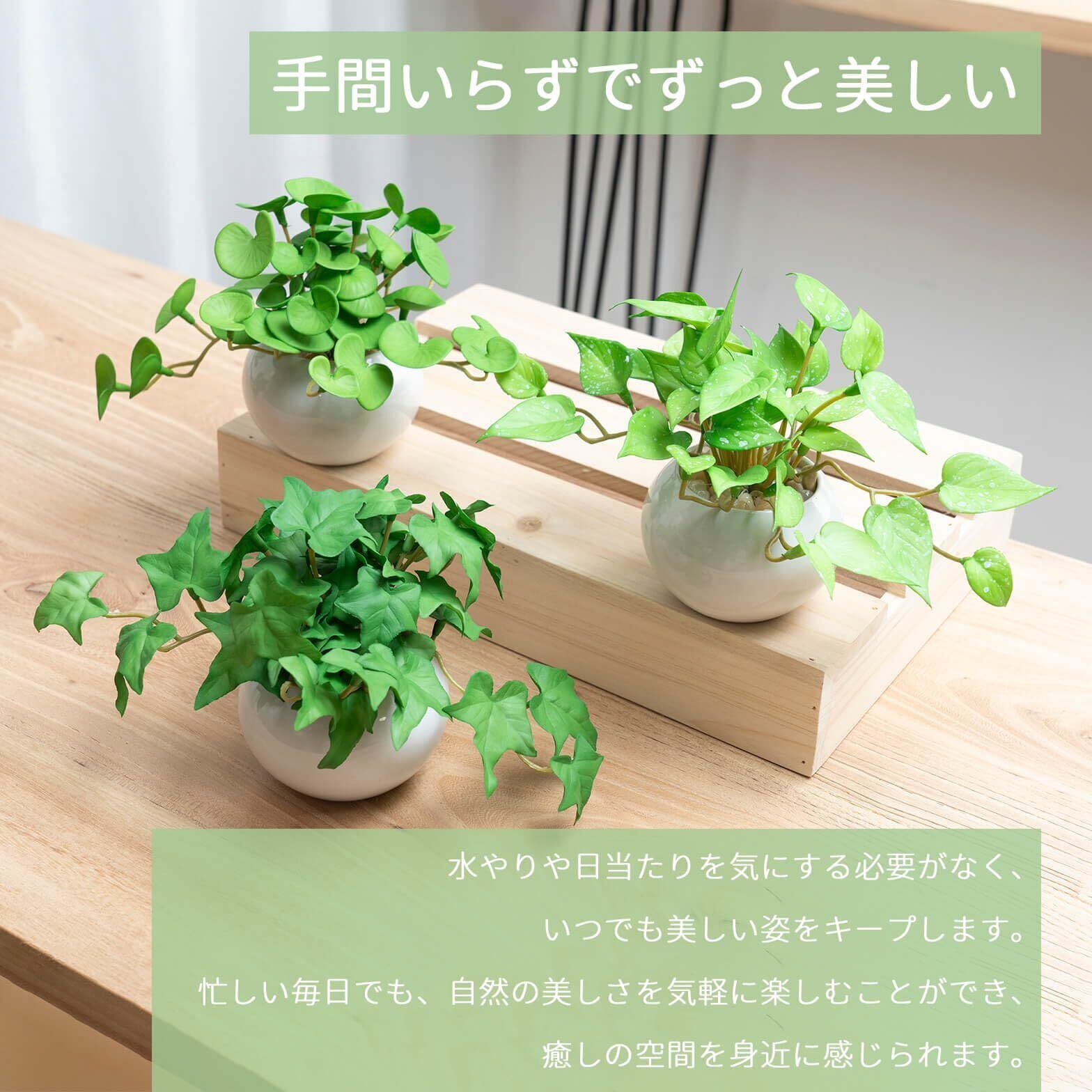 お手入れ不要で長持ち: 耐久性のある素材を使用しているため、ホコリを軽く払う程度で、特別なメンテナンスは不要です。水やりや植え替えの必要がなく、長く美しい状態を楽しめます。