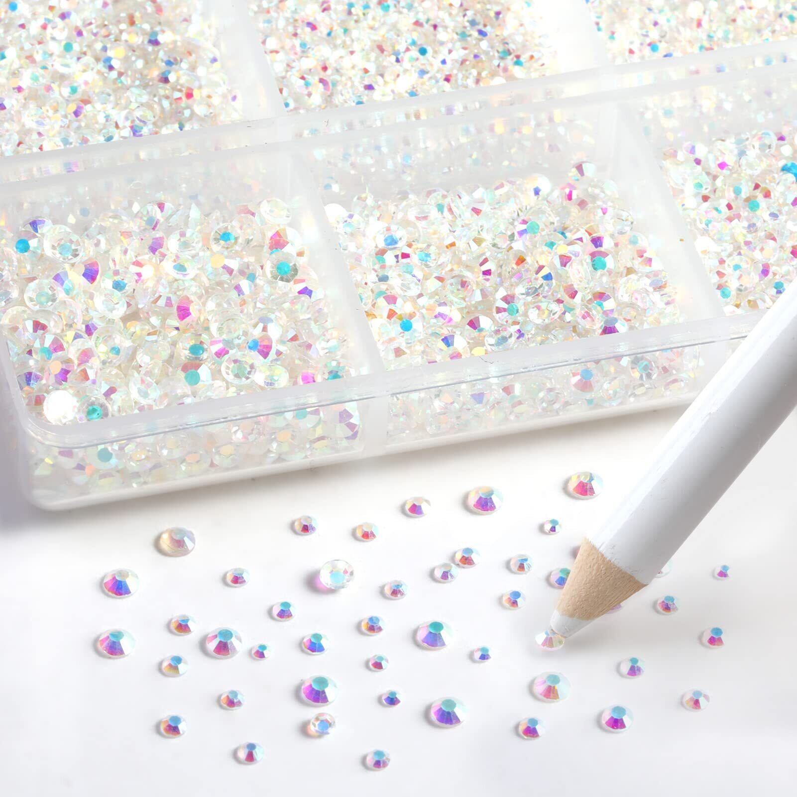 【2022最新】Beadsland(ビーズランド)7,200個フラットバック ラインストーン 、ネイル用ジェム ラウンド クリスタルラインストーン 手工芸用 6サイズ混合 ワックスペンシルキット付き、SS3-SS10、透明なAB | allstore2
