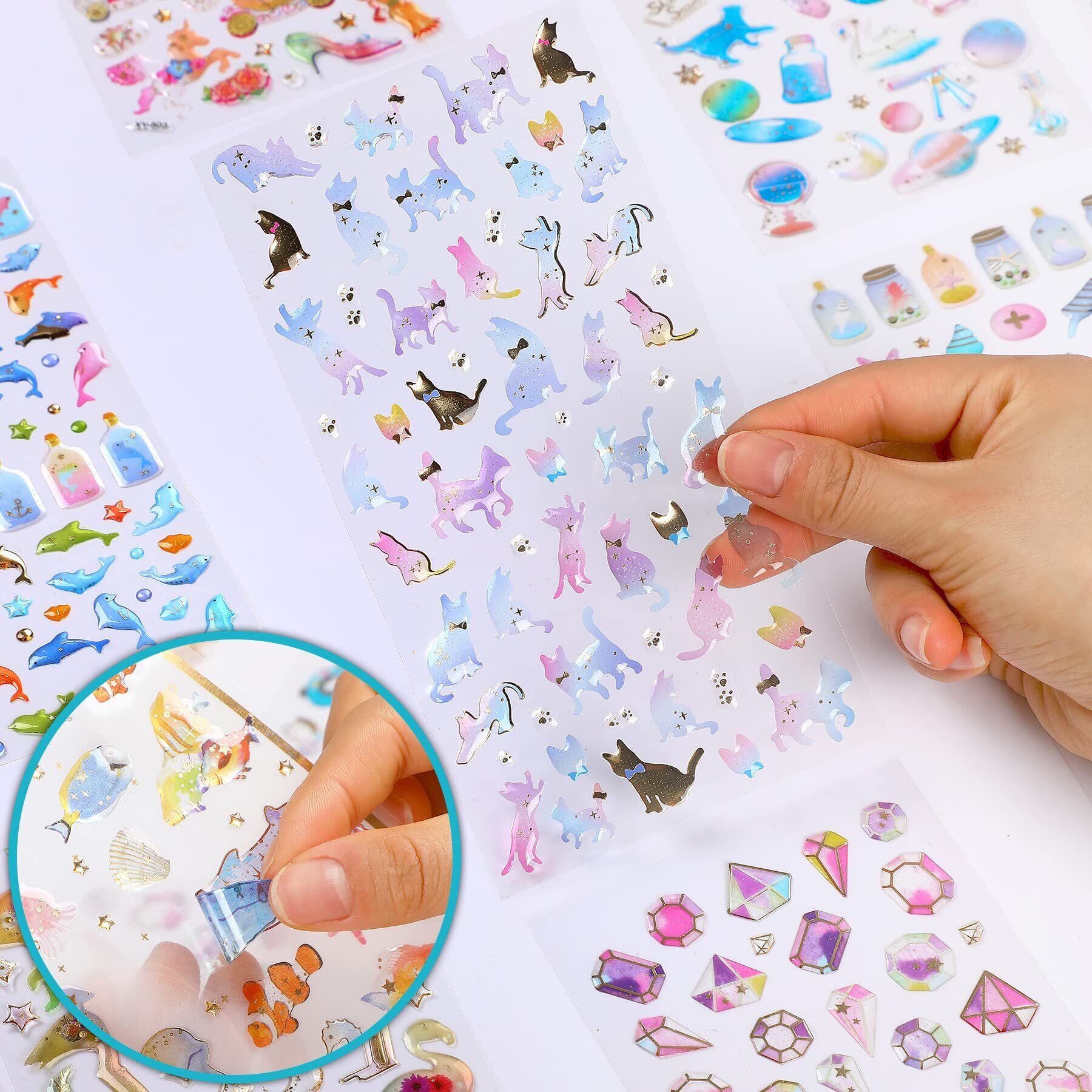 SANNIX キラキラシール 女の子 14シート ごほうびシール 手帳ステッカー ぷくぷく シール キラキラ ハート 立体 デコ ステッカー ごほうび スケジュール帳 天体心柄と猫魚