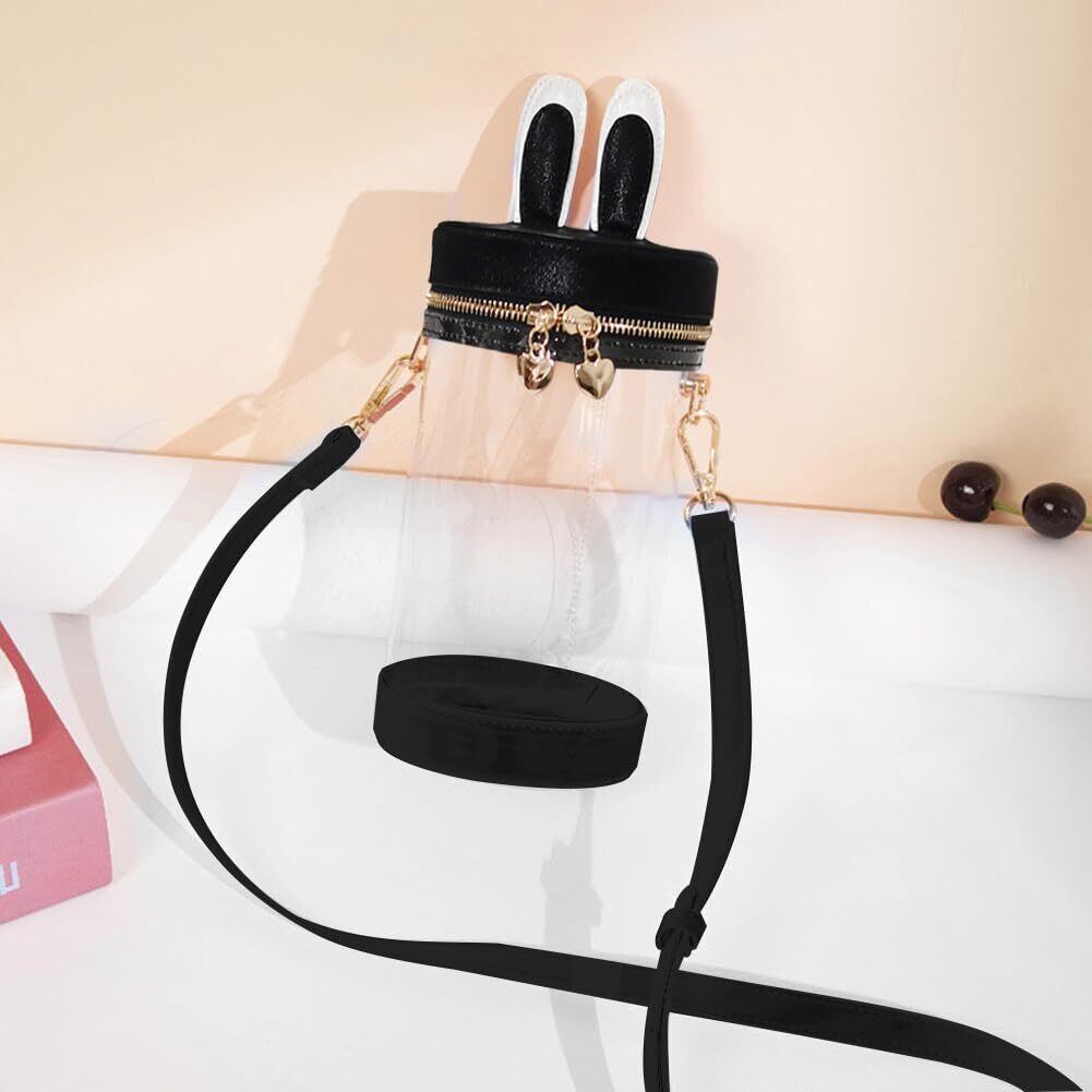 仕様:2WAYウサギ耳の円筒形・透明痛バッグ(人形なし)、素材:PVC、PU、ポリエステル。スタイル:ブラック・20cm高。サイズ:20cm高:10*25.5cm(直径*全高さ)、ショルダーベルトの長さ:100~120cm。重量:0.40g。