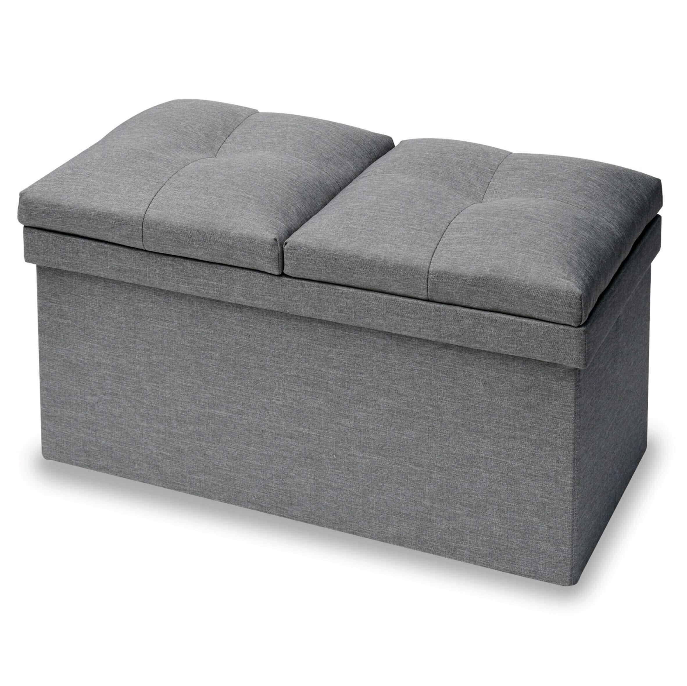 【在庫セール】山善(YAMAZEN) 収納スツール テーブル付き 座面が座布団にもなる 折りたためる オットマン 収納ボックス 椅子幅76×奥行38×高さ44cm かんたん組立 ライトグレー JLS-76Z(LGY) | allstore2