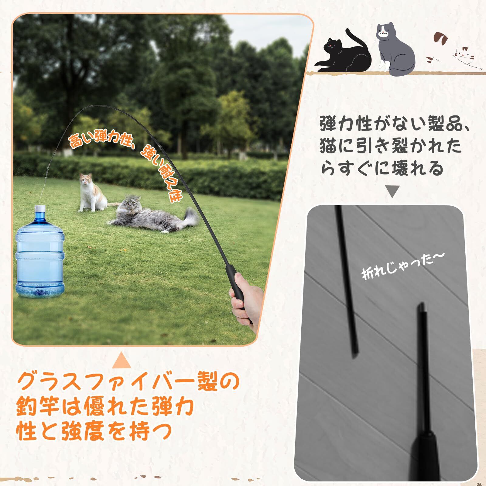 「操作は簡単」 長い釣竿のおかげで、リラックスした姿勢でも猫をからかって、飛び跳ねさせることができます。猫じゃらしは猫の健康とストレス解消に凄く役立てます。
