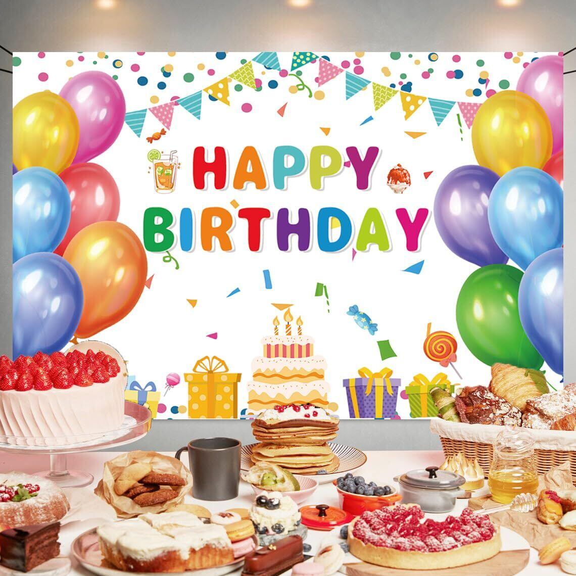 【数量限定】白い風船ケーキ バースデー タペストリー 白い風船ケーキ 誕生日 飾り付け バースデー フォトポスター 写真背景 Happy Birthday パーティー タペストリー おしゃれ 誕生日 デコレーション 子供 | allstore2