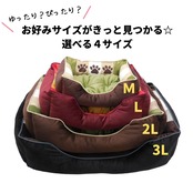 【サイズ】M:外寸 約幅50cm×奥行42cm×高さ14cm(座面:約34cm×28cm) / L:外寸 約幅65cm×奥行55cm×高さ18cm (座面:約45cm×38cm)/ 2L:外寸 約幅75cm×奥行60cm×高さ18㎝ (座面:約52cm×42cm)/ 3L:外寸 約幅90cm×奥行70cm×H21㎝(座面:約67cm×50cm)