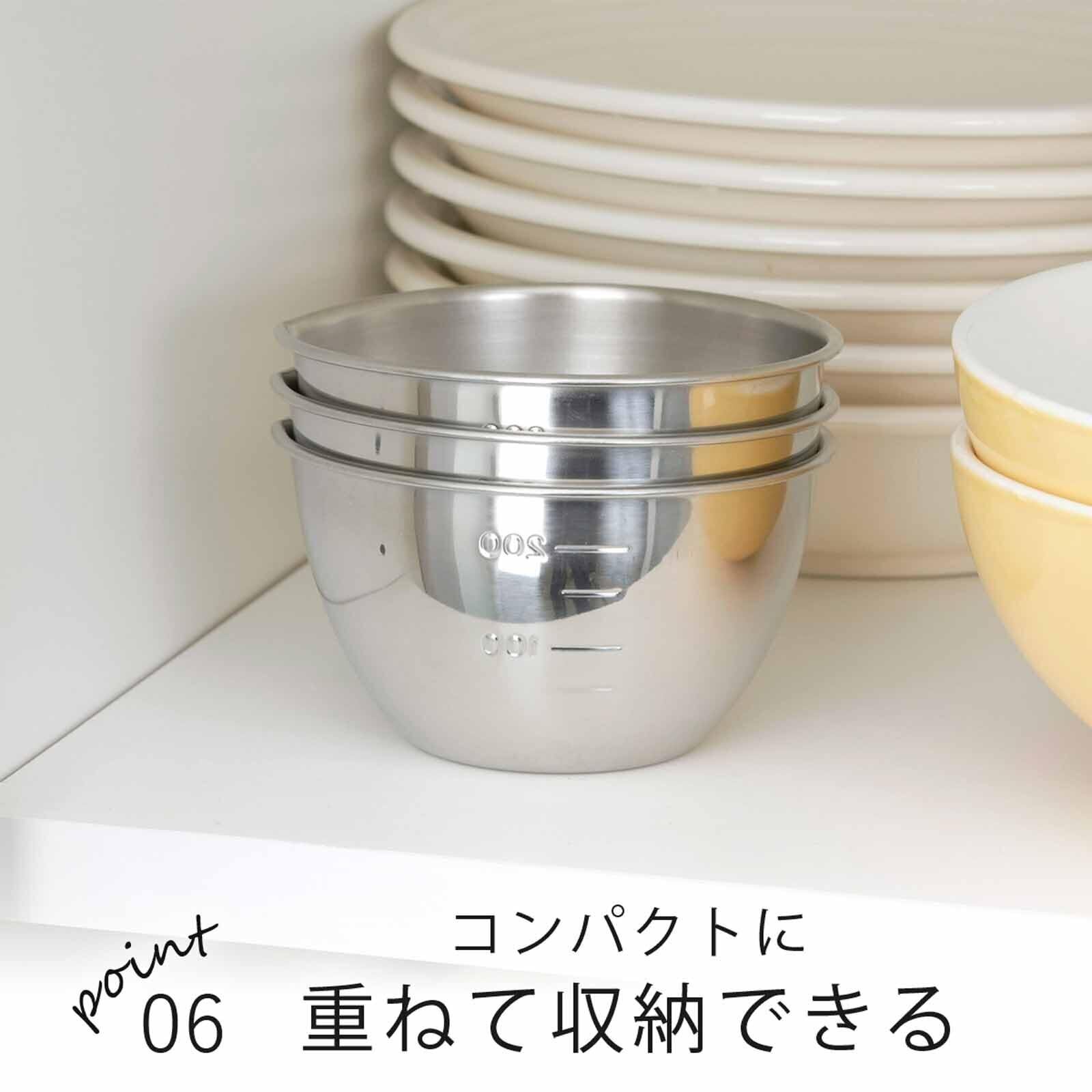 下村企販 ボウル 270ml 3個組 【日本製】 注ぎ口付き 目盛付き 食洗機対応 下ごしらえに便利 小分け ボール 容器 ステンレス 28867 燕三条