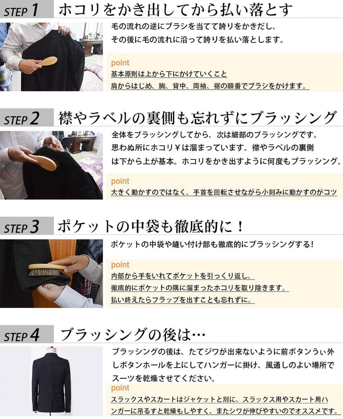 【大切な洋服・着物のお手入れに】洋服・着物のお手入れはブラッシングが基本です。度重なる洗濯やドライクリーニングは服を傷めてしまいます。服を着るたびにブラッシングすればいつもキレイに保てます。