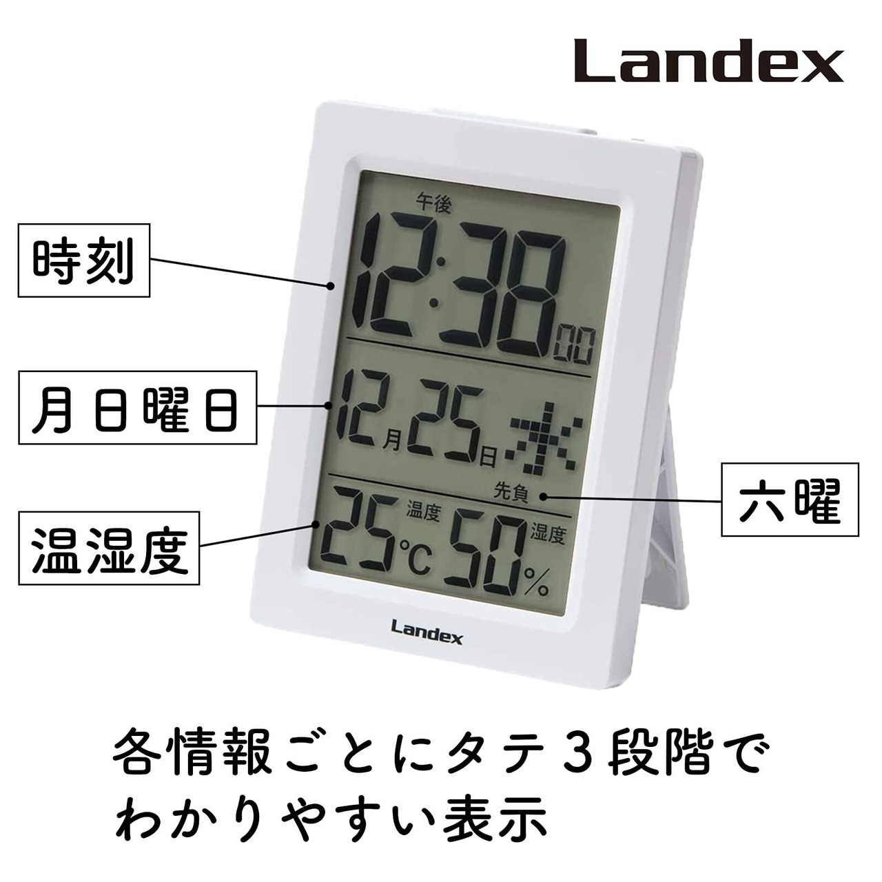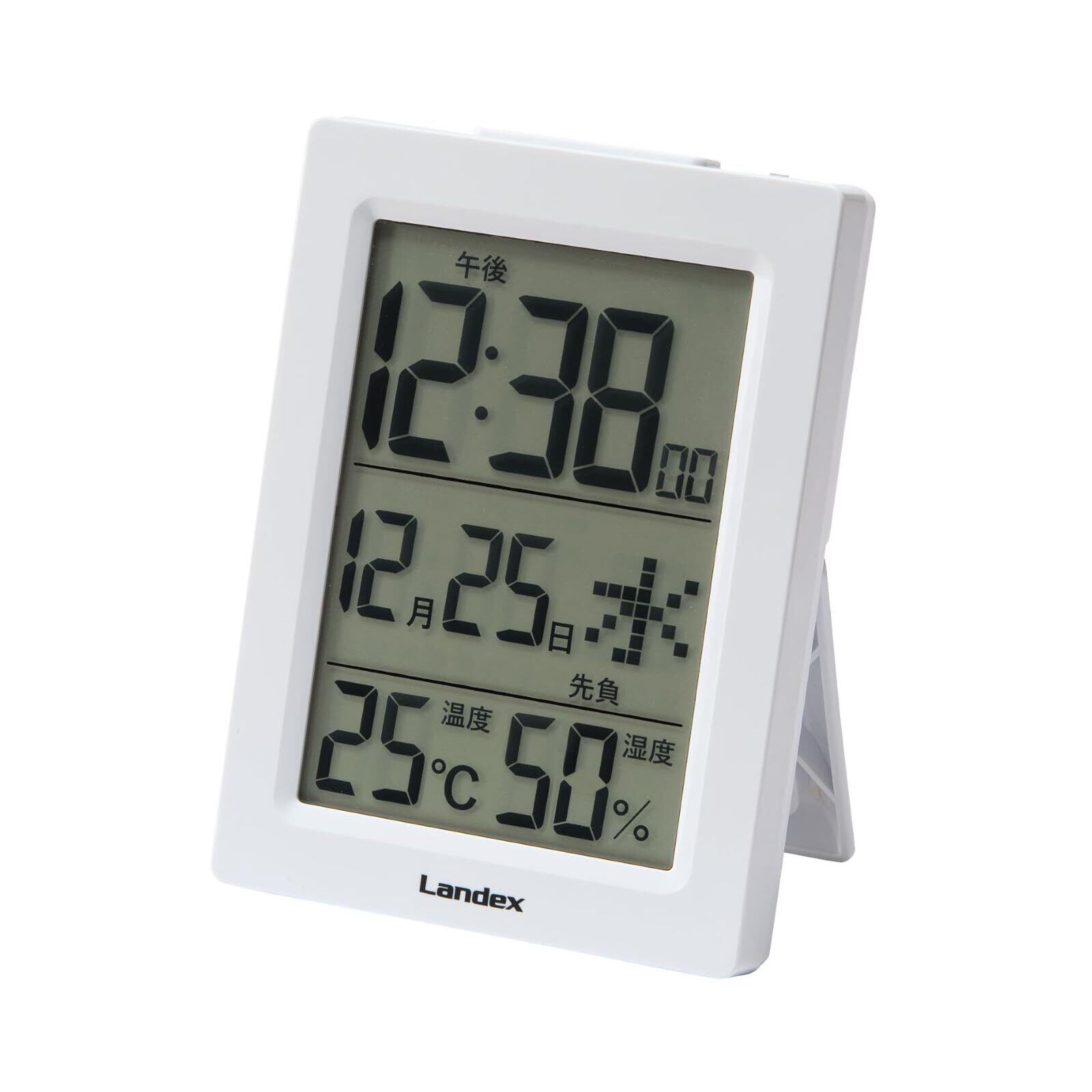 【在庫セール】ランデックス(Landex) 目覚まし時計 白 デジタル スリムデジット 自動点灯 六曜 温度 湿度 カレンダー 表示 置き掛け兼用 YT5285WH