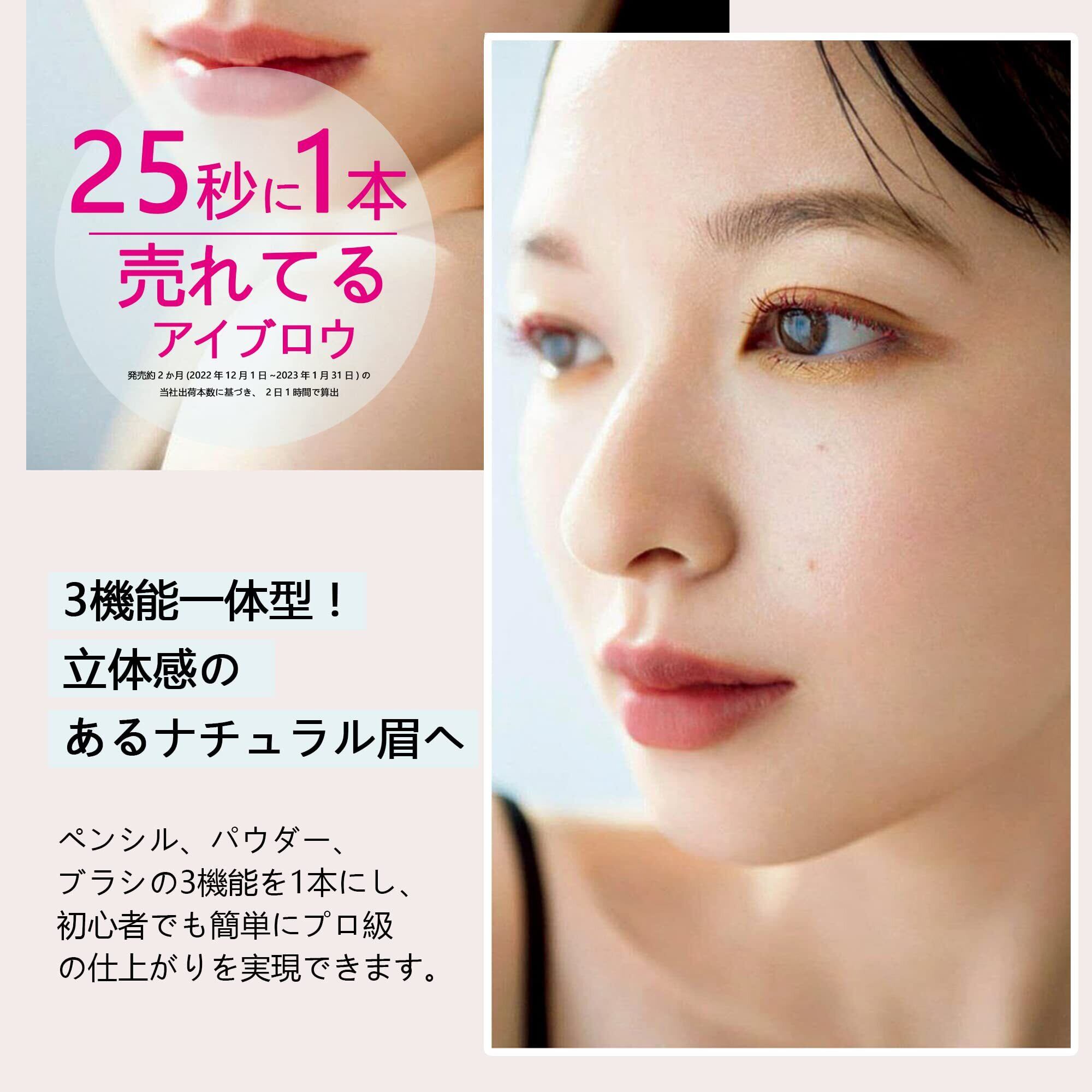 「新たにブラシ付き、1本で美人眉に」1-3mmの細芯で眉尻まで描きやすい、ブラシ付き眉を整えたり、ぼかすのにピッタリなブラシ付き。柔らかい毛質を採用したブラシ、 ナチュラルふんわり眉に仕上がります。