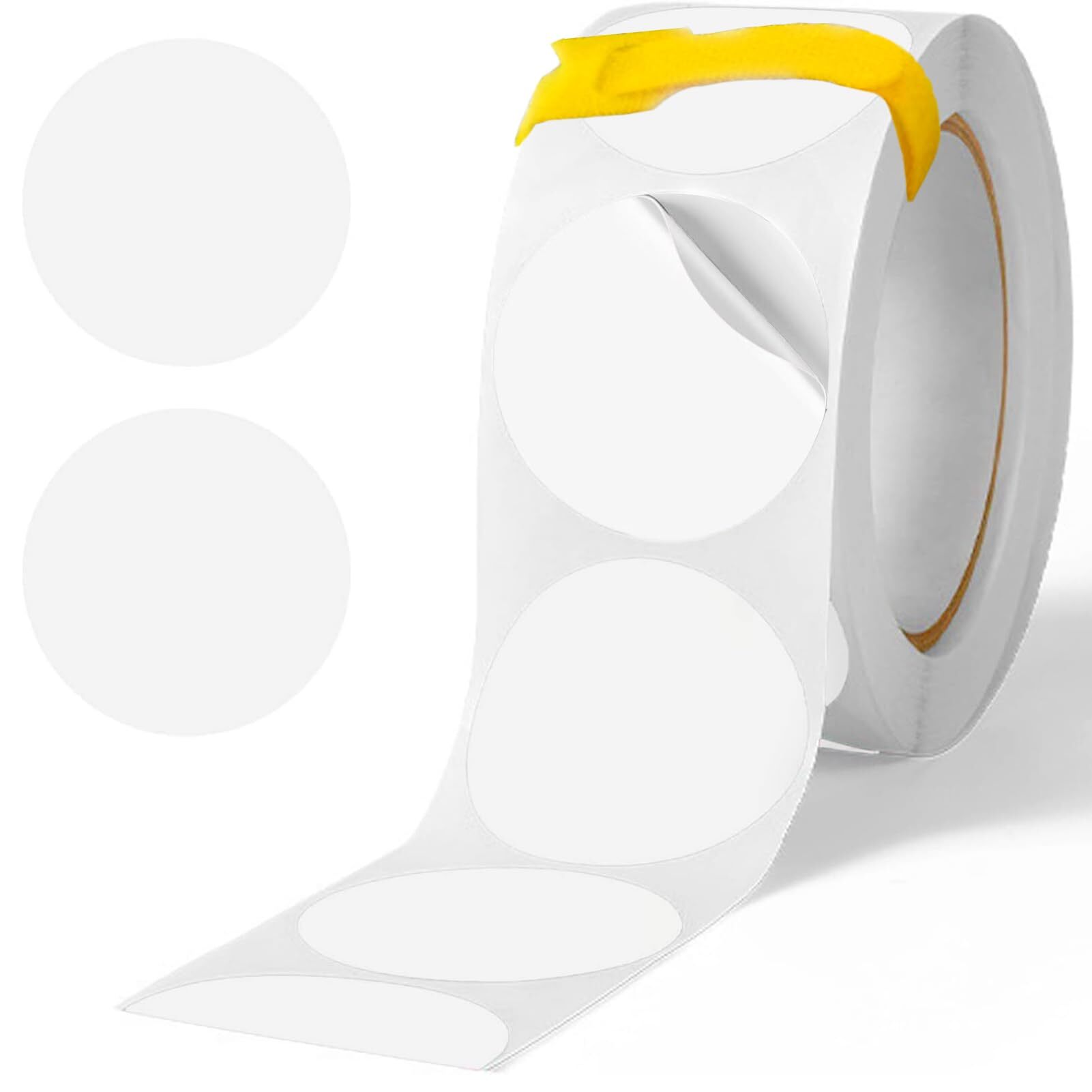 Aokeea カラーラベル 丸型 50mm 白 丸シール500枚入 マジック式結束バンド1本 大容量 ロール ステッカー 円形シール ラベルシール アート光沢ラベル ホワイト