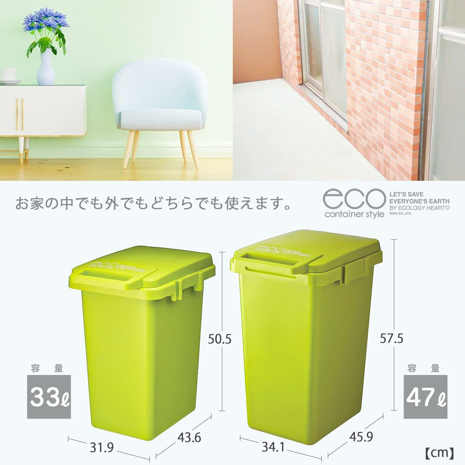 リス ゴミ箱 ワンハンド ハンドル付き グリーン 45L ecoコンテナスタイル2 日本製 CS2-45J