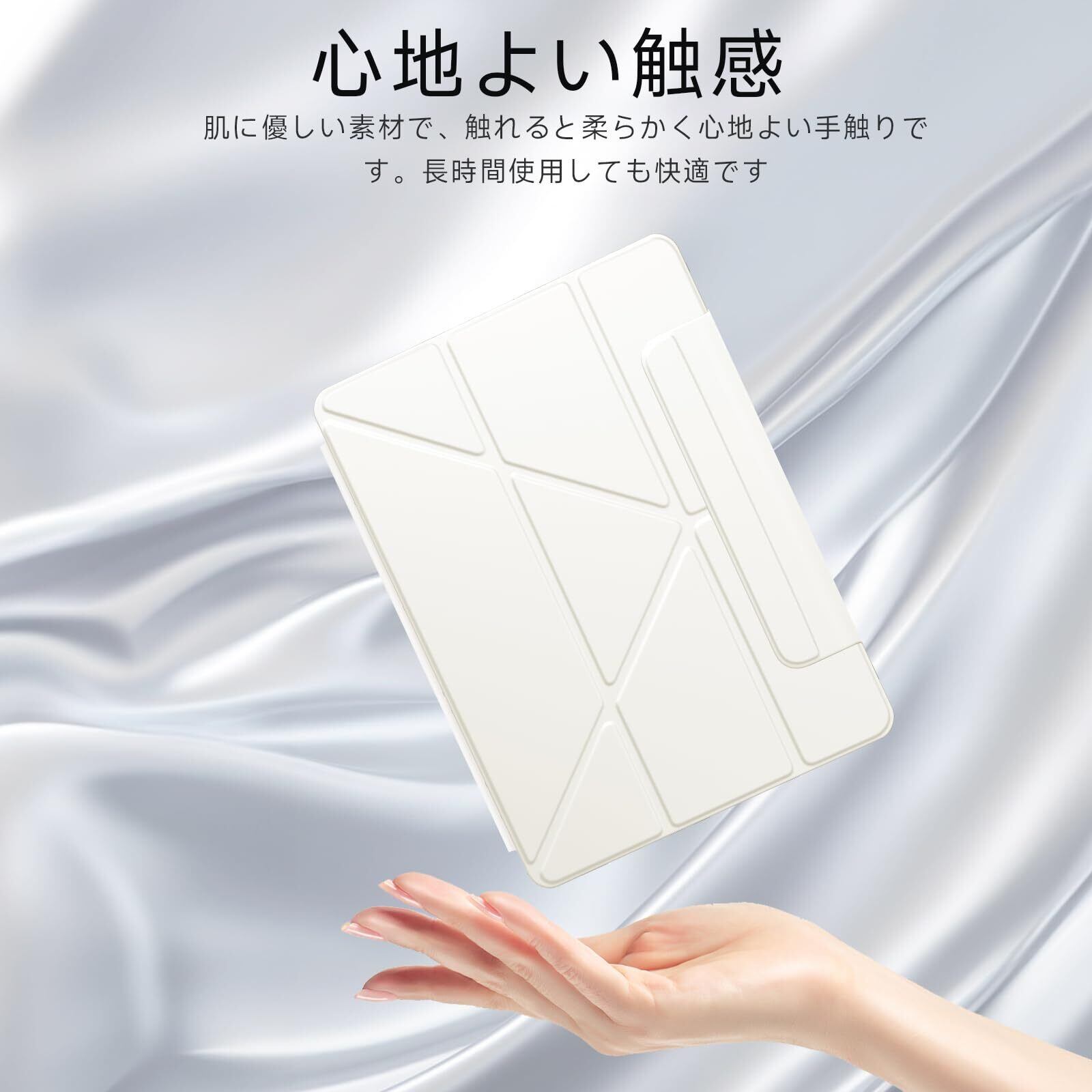 【多機能スタンド機能&角度調整】横置きと縦置き両方に対応する三角スタンド機能で、使用シーンに合わせた自由な角度調整が可能です。4つの角度を折り紙のように折りたたんで、動画視聴や作業、ネットサーフィンなど、どんな場面でも快適にお使い頂けます。安定性に優れた設計で、倒れる心配もありません。