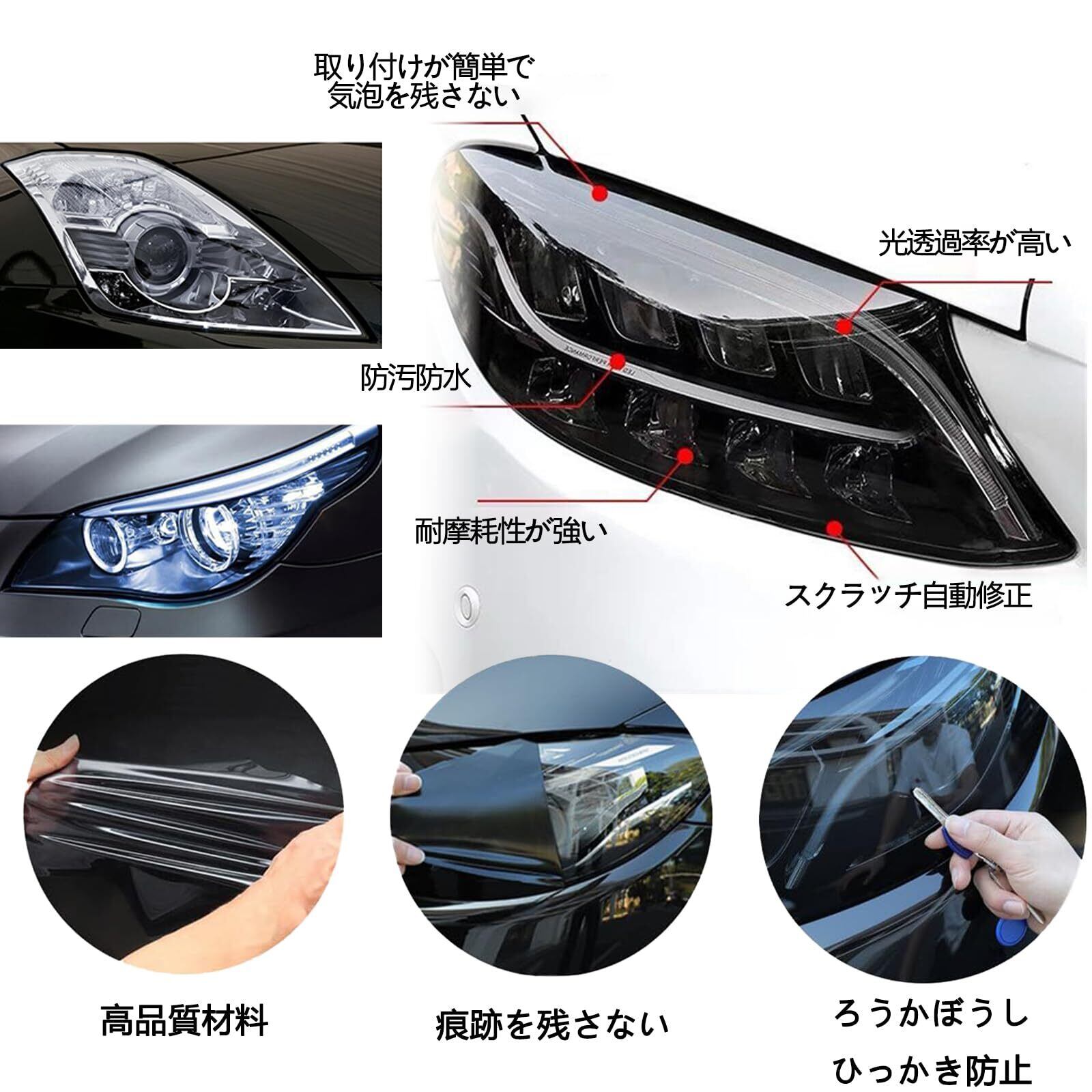 【多用途・幅広い対応】高耐久・耐候性・防水性に優れたPVC素材を採用し、ヘッドライトだけでなく、テールランプ、フォグランプ、ウインカーなどのカスタムにも最適。さらに、車の窓ガラスやバイクのライトにも応用でき、幅広い用途に対応します。