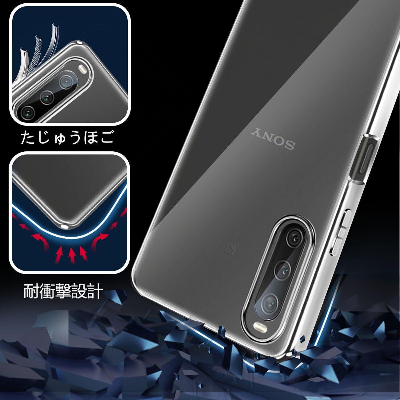 【新着商品】Xperia10 V ケース クリア SO-52D SOG11 カバー 耐衝撃 メッキ加工 スマホケース ストラップホール付き 軽量 薄型 透明 持ちやすい TPU素材 シルバー