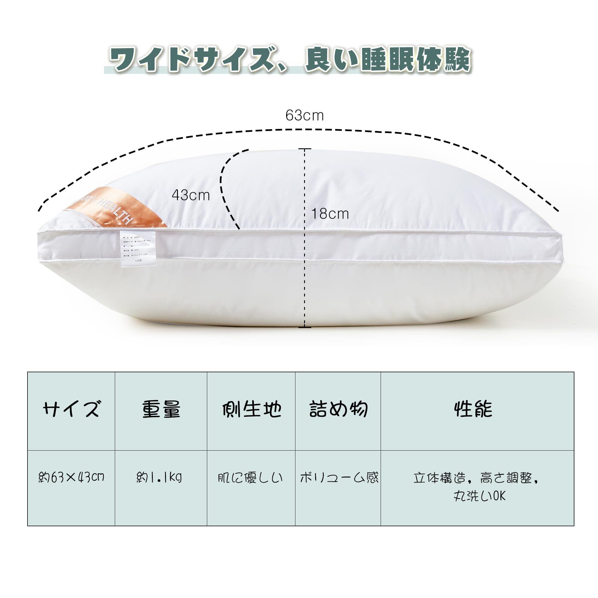【丸洗いOKで清潔持続】枕本体は洗濯機で丸洗い可能(洗濯ネット推奨)。繰り返し洗濯しても変形しにくく、常に清潔で新鮮な状態を保ちます。忙しい方でも簡単にお手入れできるので、衛生的に長くご使用いただけます。安心の2年間:製品に万が一不具合が生じた場合、いつでもお気軽にお問い合わせください。