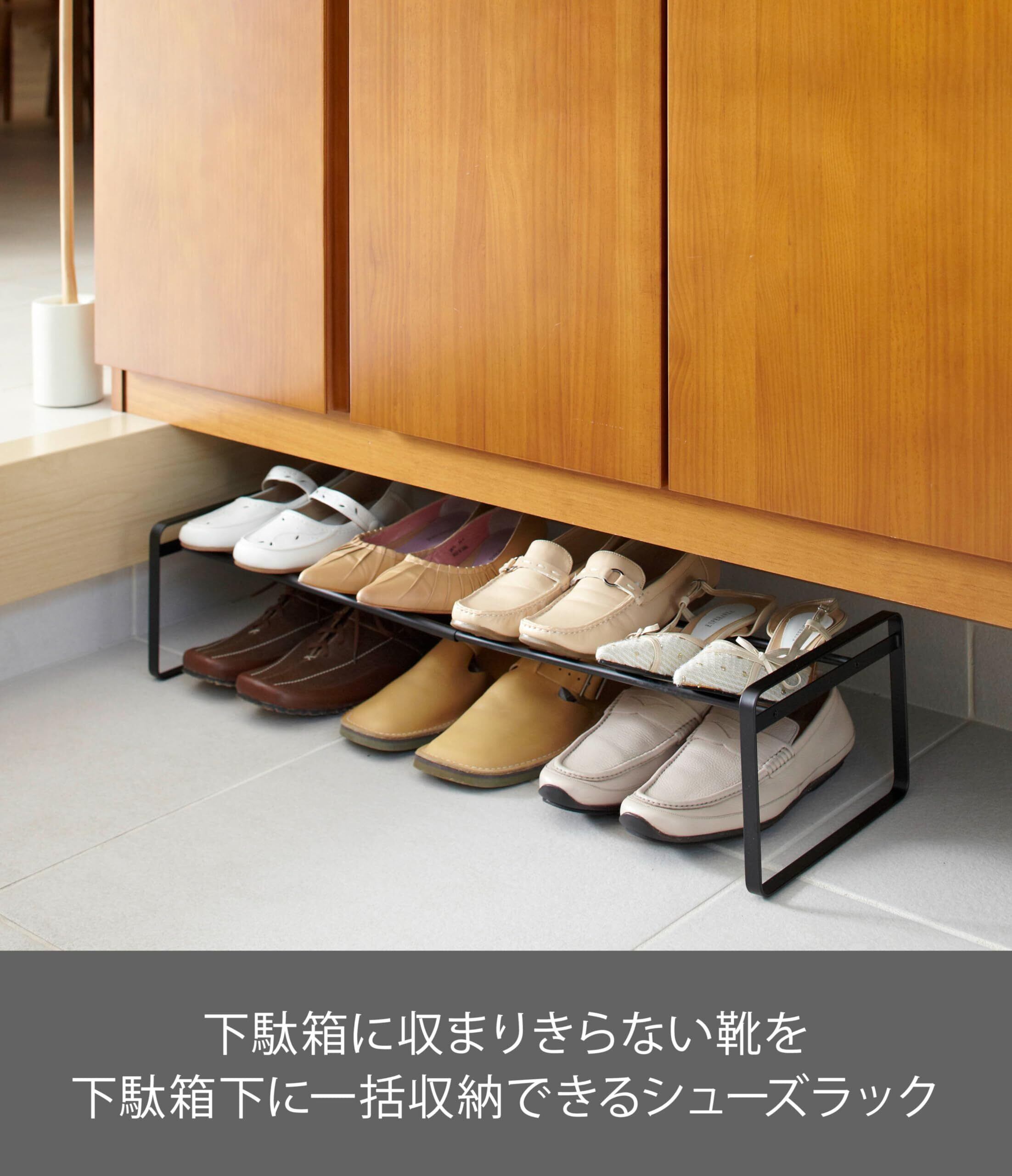 山崎実業(Yamazaki) 伸縮 シューズラック ブラック 約W41~70×D25×H17.5cm フレーム frame 下駄箱下にも収まる 靴収納 7210