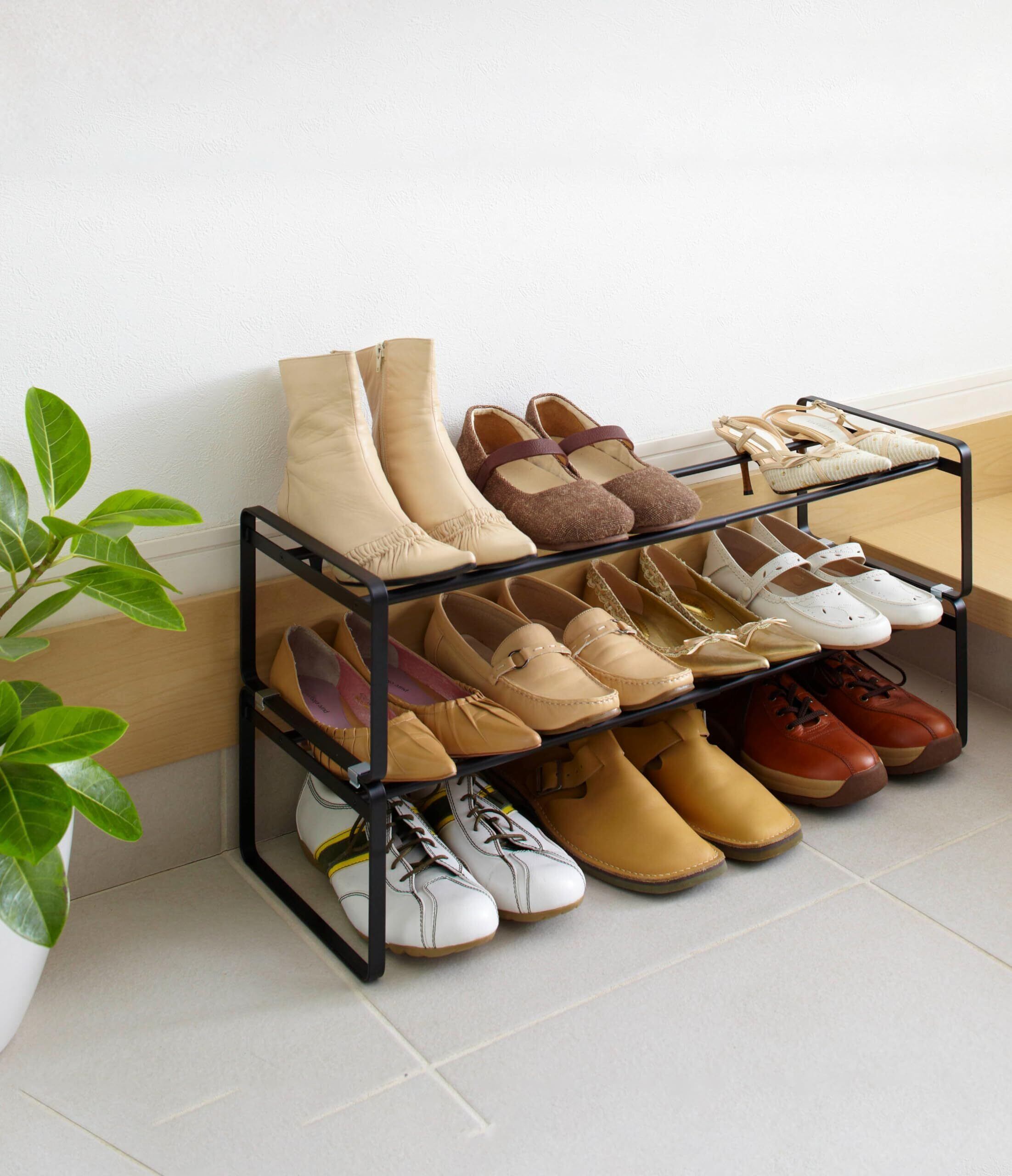 玄関の靴箱の下に収納できるコンパクト設計シューズラック!