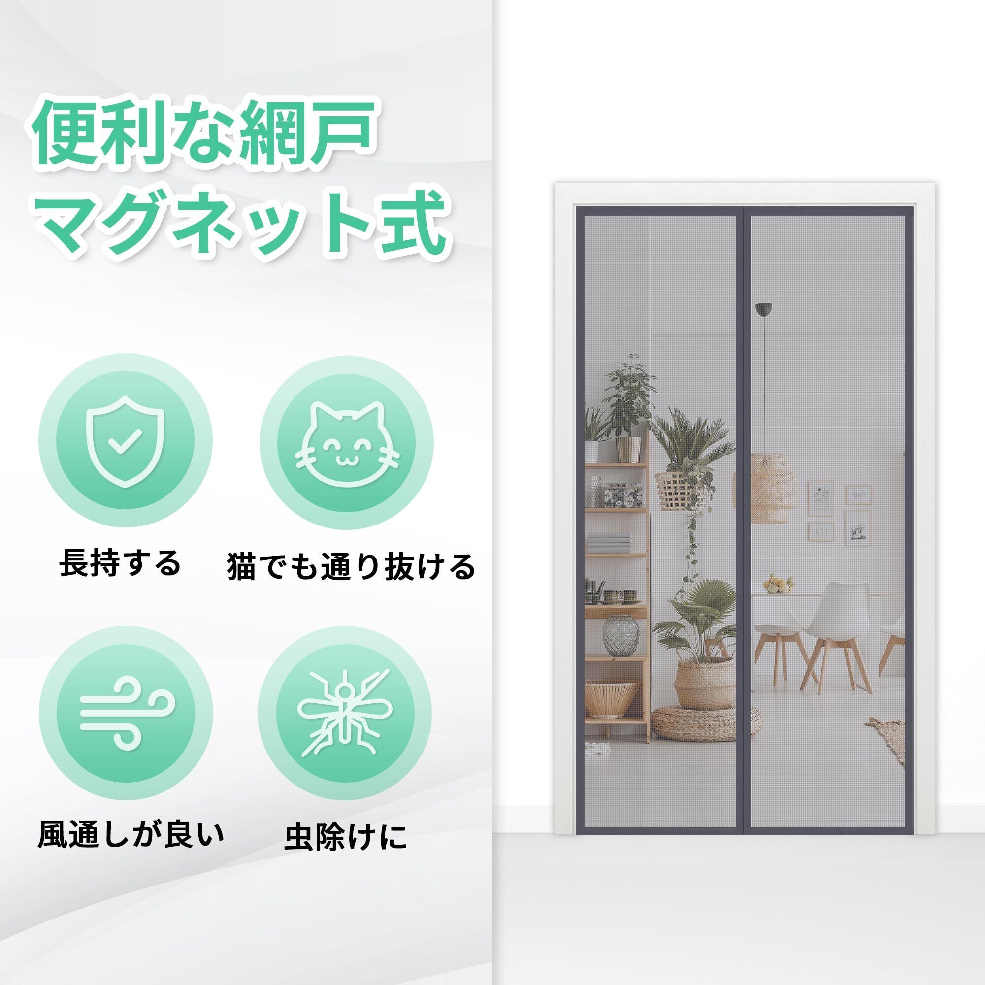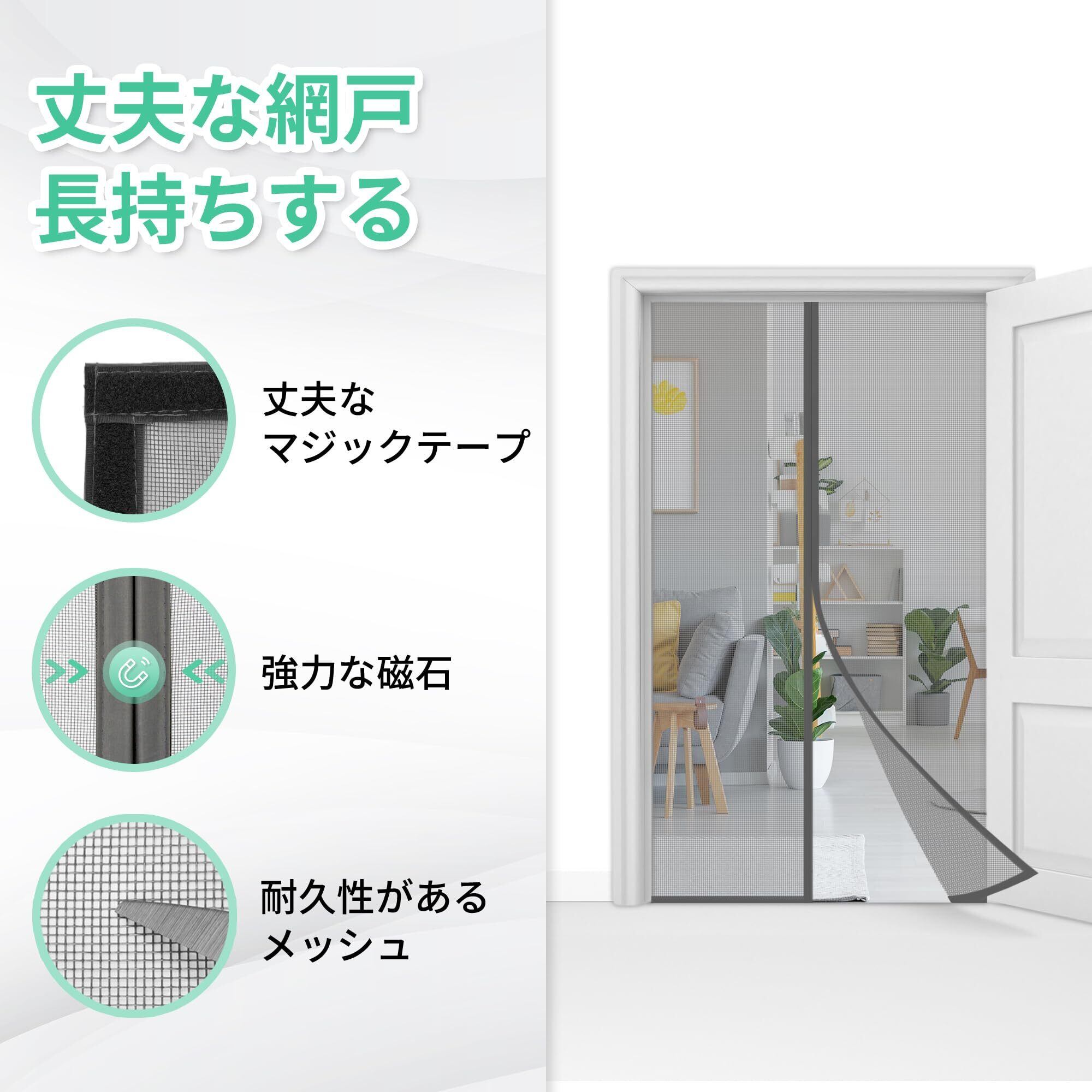 NGreen マグネット 玄関網戸 網戸カーテン 90x210cm ドア用 後付け