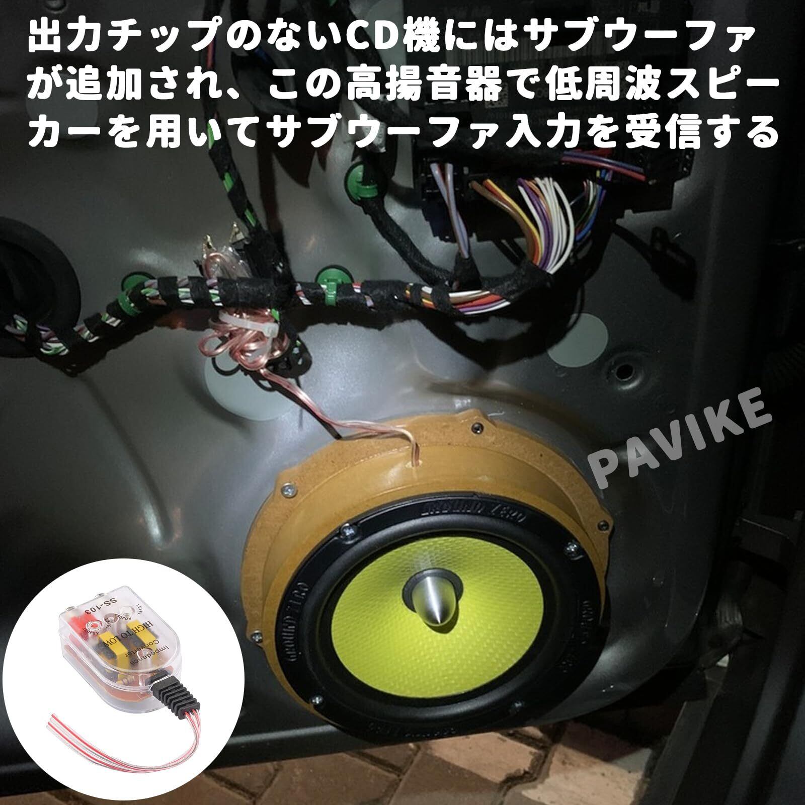 【機能】このハイローコンバーター 車は、低周波(RCA)出力のないホスト、スピーカー出力高周波から低周波出力に使用され、車のパワーアンプまたはサブウーファー信号入力を接続するために使用されます。