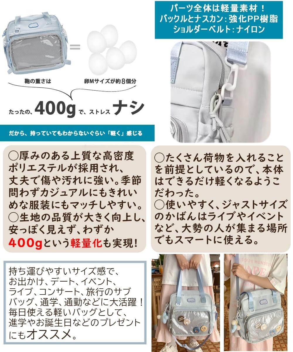 [NGELOM] 痛バッグ 痛バ 3way a4 軽量 ショルダー リュック ハンド 31x31cm 透明ポケット メッシュ生地付き かわいい ポリ製 おしゃれ 4色 はっ水 缶バッジ ぬいぐるみ 通学 推し 推し活 オタ活 学生 大人 女の子 推し活バッグ