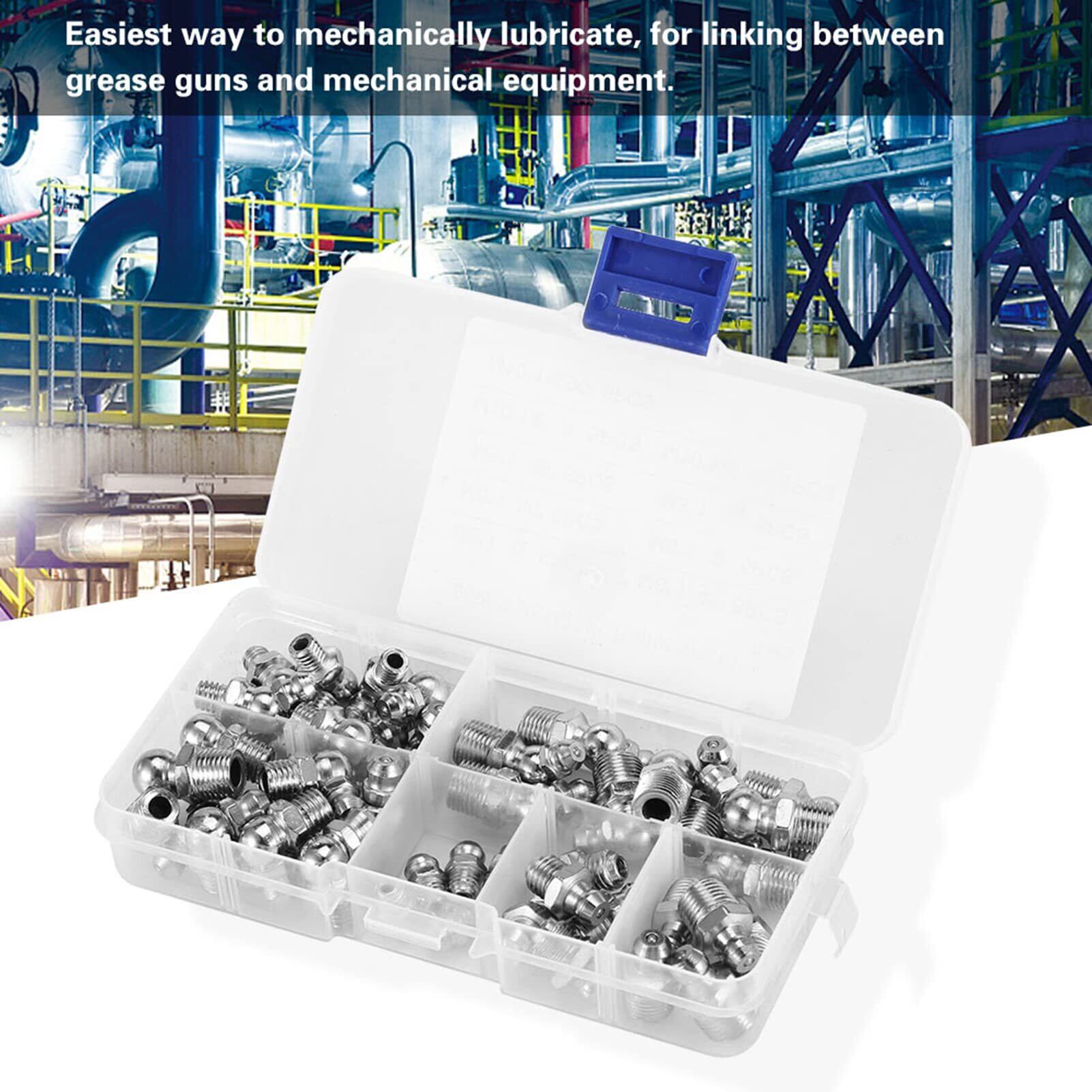 Honiwu 45個 グリスニップル M6 M8 M10 油圧グリースニップルセットに 直ぐ/45 度/90 度 3 つの角度含まれ グリスガン ノズル継手 高硬度 機械潤滑 注油 工具 自動車 オートバイ トラック 刈払機の機械装置とグリースガンの接続 用