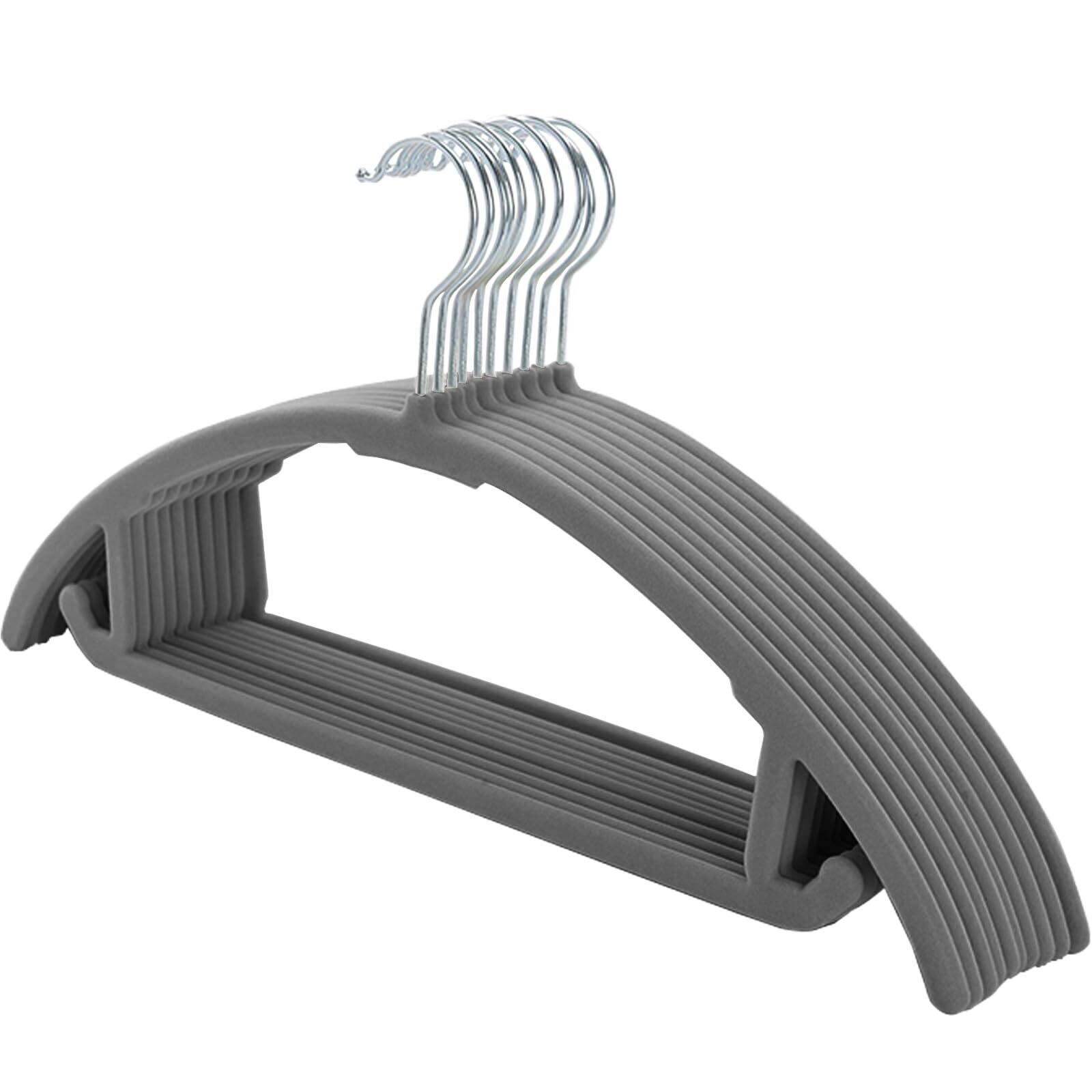 【2022最新】AYO ハンガーすべらない 10本組 滑らないハンガー かたくずれ防止 360度回転フック 軽量 曲げれる 頑丈 収納 ベルベット製 グレー