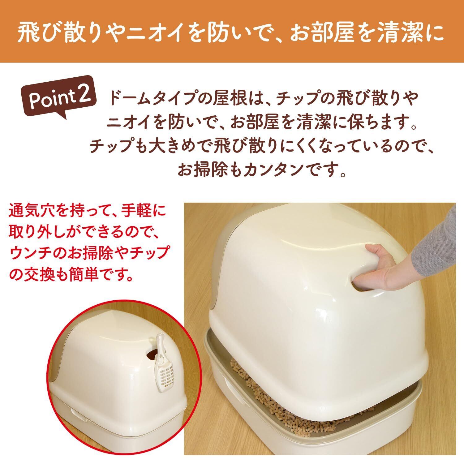 ニャンとも清潔トイレ 猫 トイレ 本体セット [約1か月分 猫砂・シート付] ドームタイプ 飛び散り ニオイ を防ぐ ライトベージュ 猫用 システムトイレ 猫トイレ フードカバー