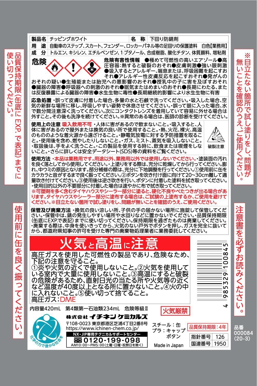 イチネンケミカルズ(Ichinen Chemicals) 車用 アンダーコート剤 チッピング ホワイト 420ml NX84 凸凹耐チッピング塗料