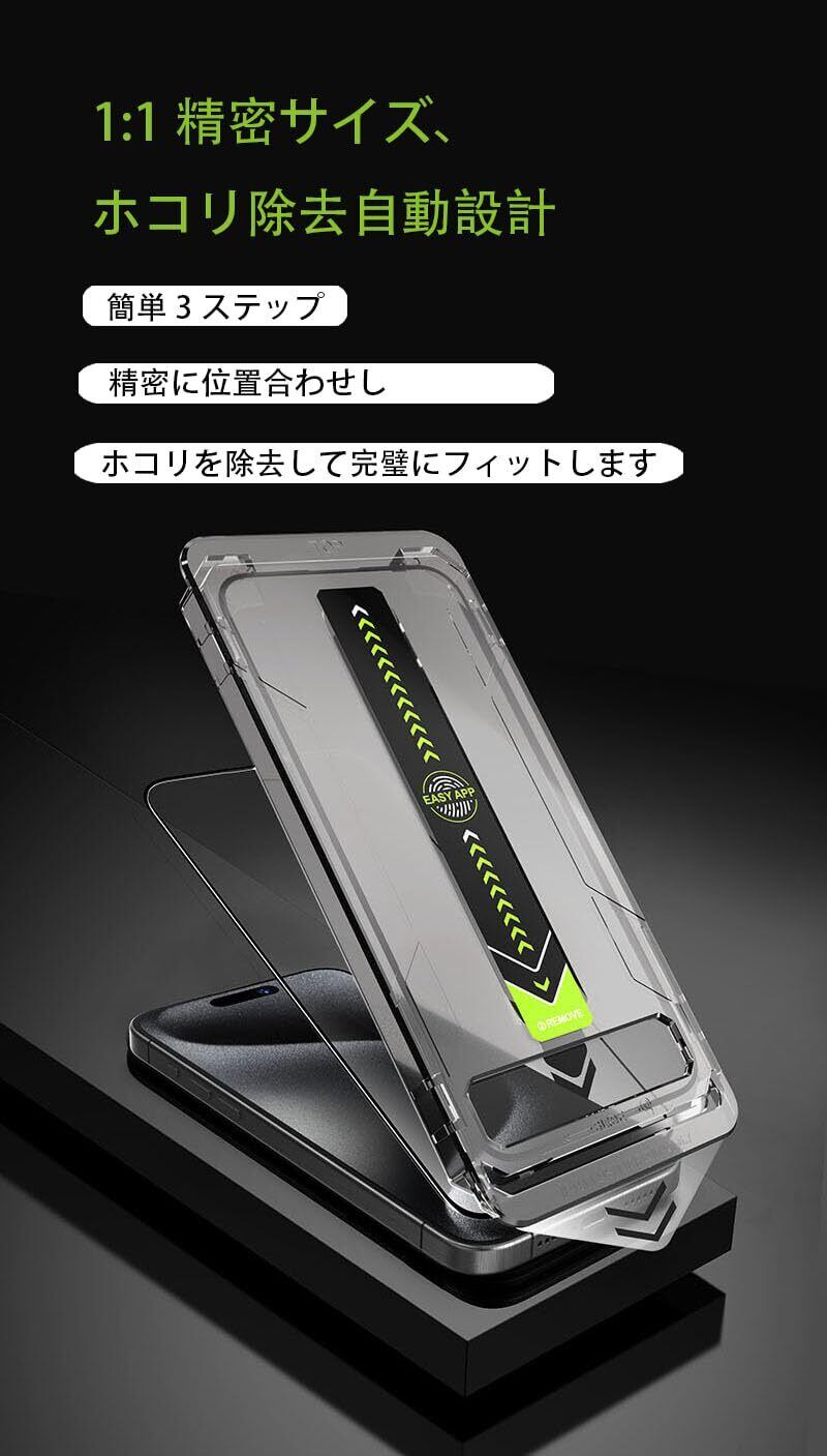ズレずに貼れて、誰でも一発成功|防塵・自動吸着構造 自動吸着+位置誘導フレームでズレない設計。貼り直し不要で、初心者でもきれいに貼れる。ホコリも入りにくく、気泡ゼロ。