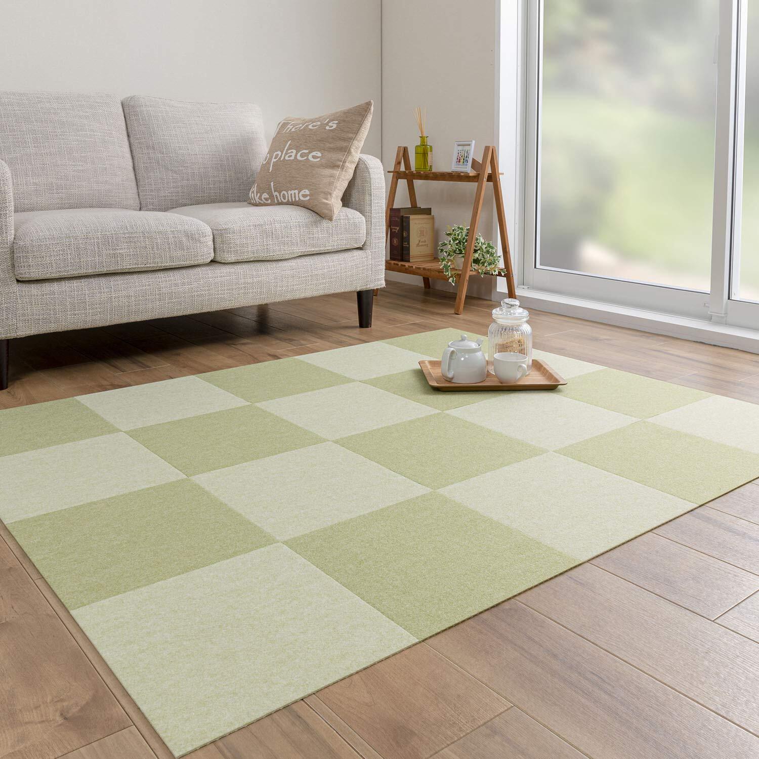 【日本製 撥水 消臭 洗える】サンコー ずれない タイルカーペット 30×30cm グリーンセット 20枚 フラットタイプ おくだけ吸着 ジョイントマット OJ-36