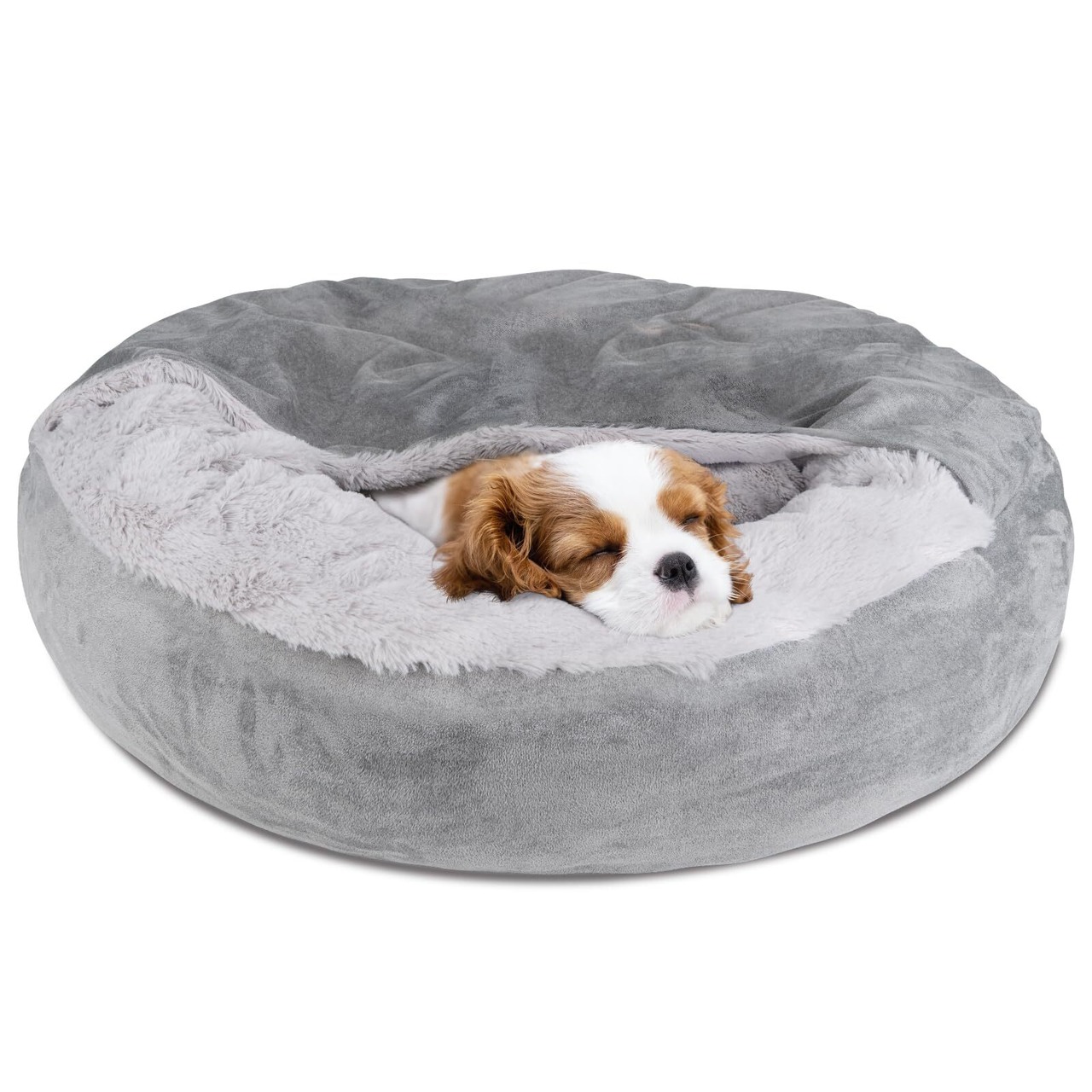 【新春セール】犬 ベッド 猫 ベッド ペットベッド 犬 猫 兼用 フリース生地 ポリコットン内蔵 フワフワ ほかほか カバー外せる 布団付きタイプ あご乗せできる 裏面滑り止め設計 カバー洗える ペットクッション (グレー, S(直径約60cm)) | allstore2