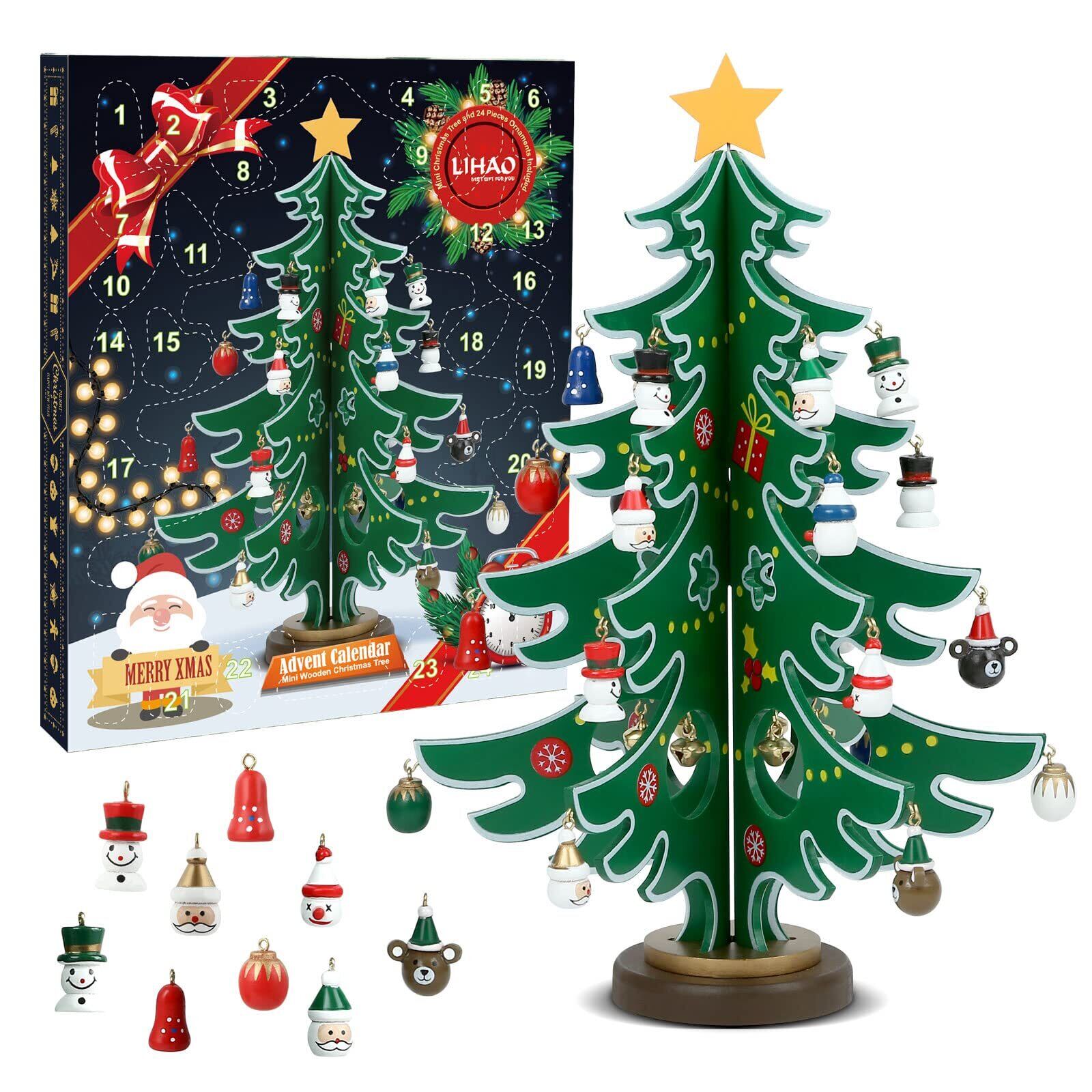 LIHAO アドベントカレンダー 2024 クリスマスツリー 卓上 クリスマスカレンダー クリスマス 置物 クリスマスプレゼント 子供 おもちゃ クリスマス 飾り オーナメント 置物 飾り付け デコレーション 装飾 クリスマスつりー カウントダウン カレンダー Advent Calendar 2024