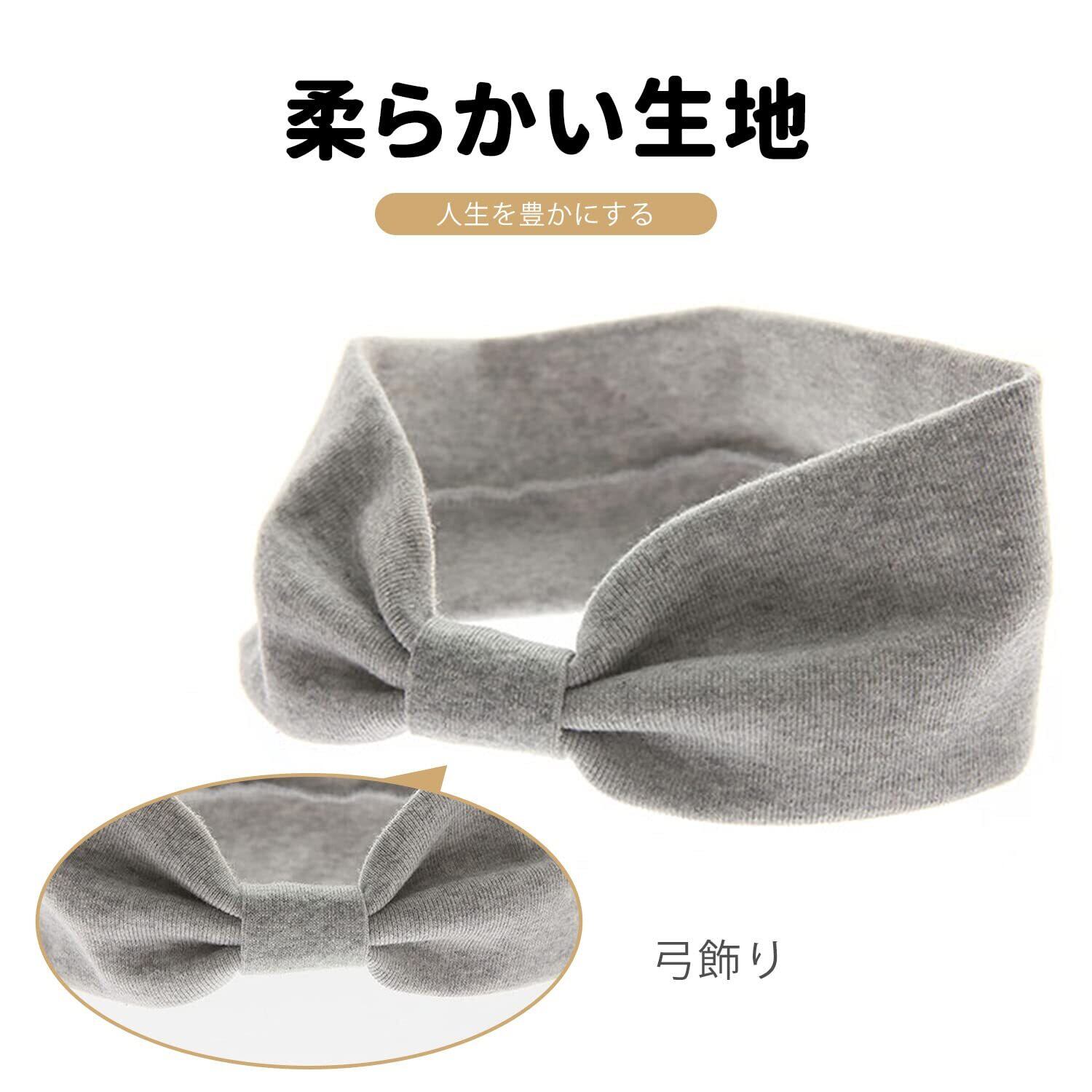 RICISUNG ヘアバンド レディース 3点セット 綿素材 ターバン おしゃれ シンプル 柔らかい 伸縮性 洗顔 お風呂 ヨガ お出かけ 旅行用 ブラック、グレー、ベージュ フリーサイズ