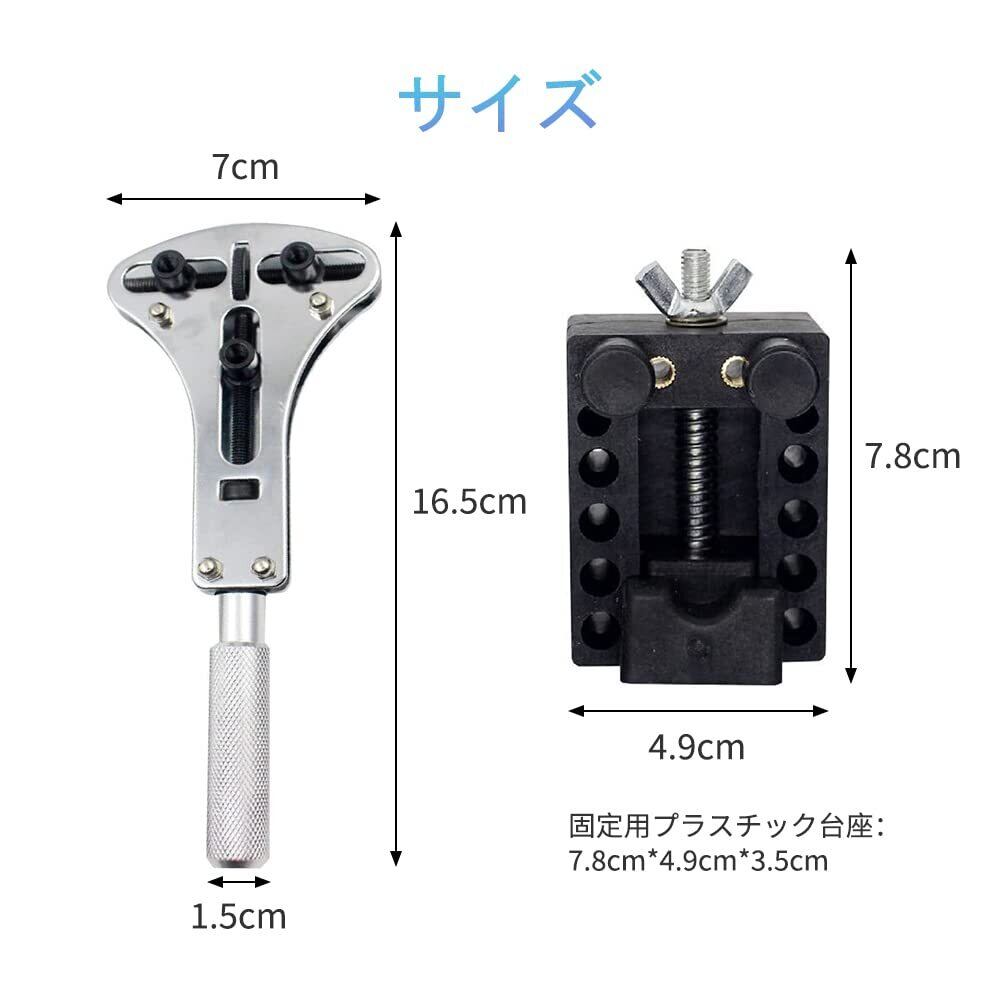 時計の大きさに合わせてオープナーのネジを回して調整することで裏蓋をきっちり固定できます。台座にセットすれば安定した状態で作業が可能です。