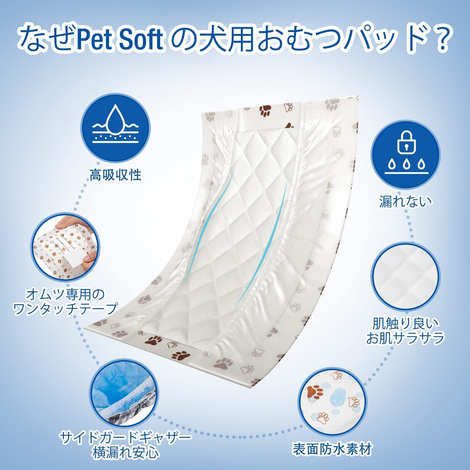 【優れた吸水性能】pet softおむつパッドは中身は吸水性能に優れた素材を採用し、水分が素早く吸収されます。水分はパッドの中にしっかりロックされ、逆戻りせず、お肌がサラサラでワンちゃんが快適です。