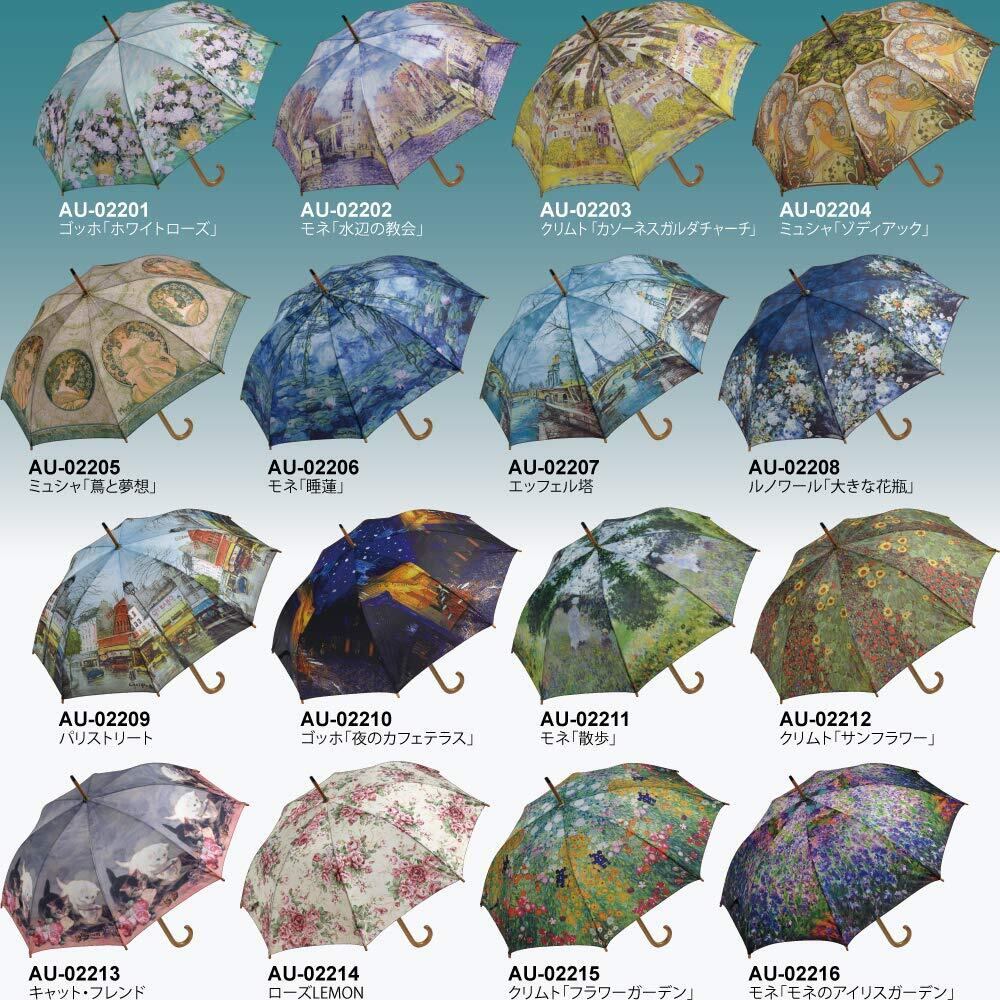ユーパワー 傘 マルチカラー 58cm(親骨長) 木製ジャンプ傘 名画シリーズ モネ「睡蓮」 AU-02206