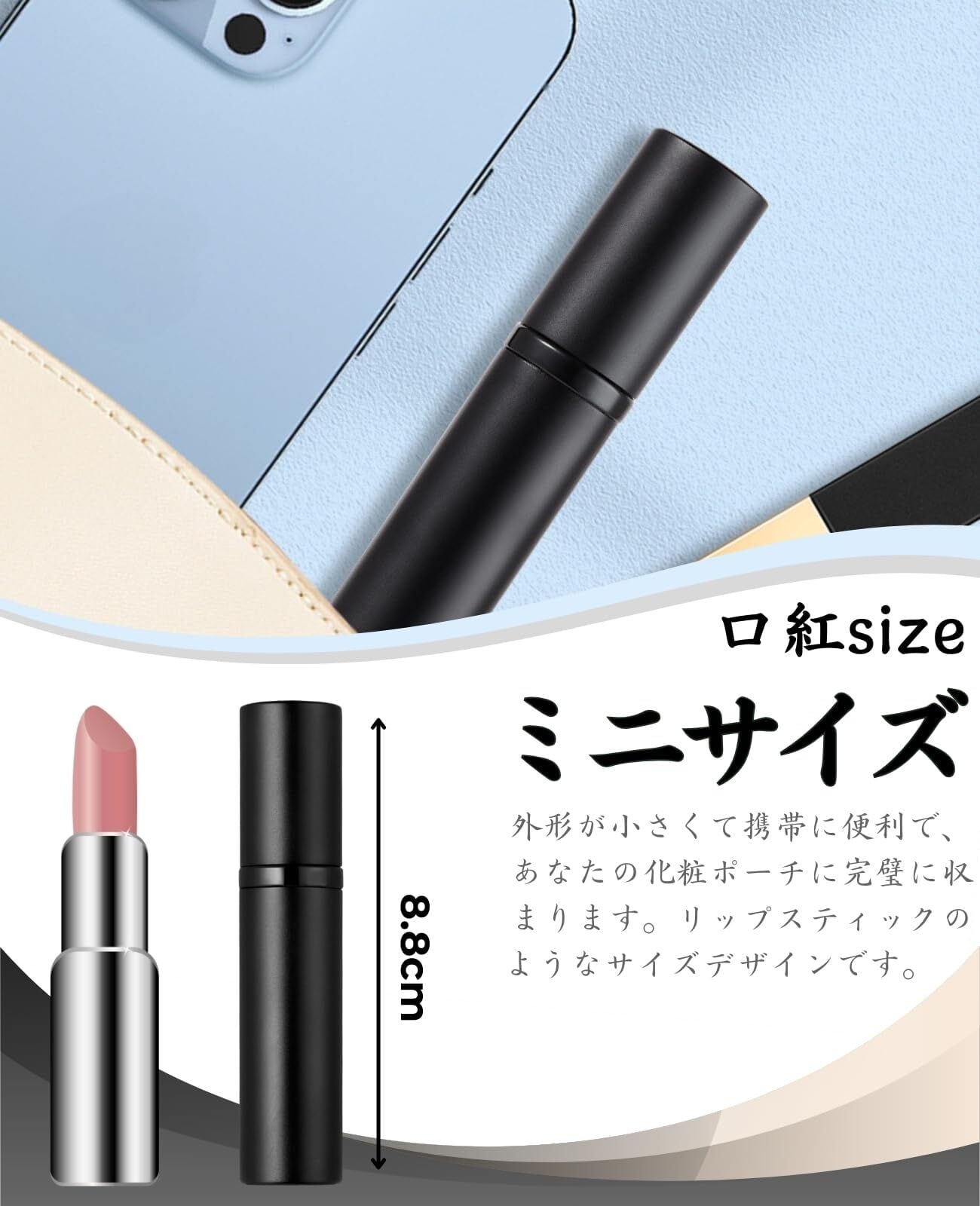 【口紅サイズ・携帯しやすい】口紅サイズのコンパクトなデザインで、ポケットやミニバッグにもすっぽり収まり、機内持ち込みも可能。高品質なアルミ素材で作られており、耐久性に優れています。