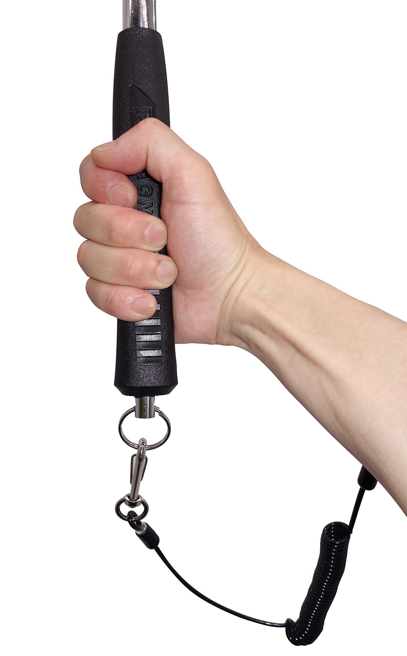 グリップエンドのセーフティーリングに落下防止コードが装着できる。ヘッドとグリップをワイヤーで連結し、万が一のヘッドの落下を防止。