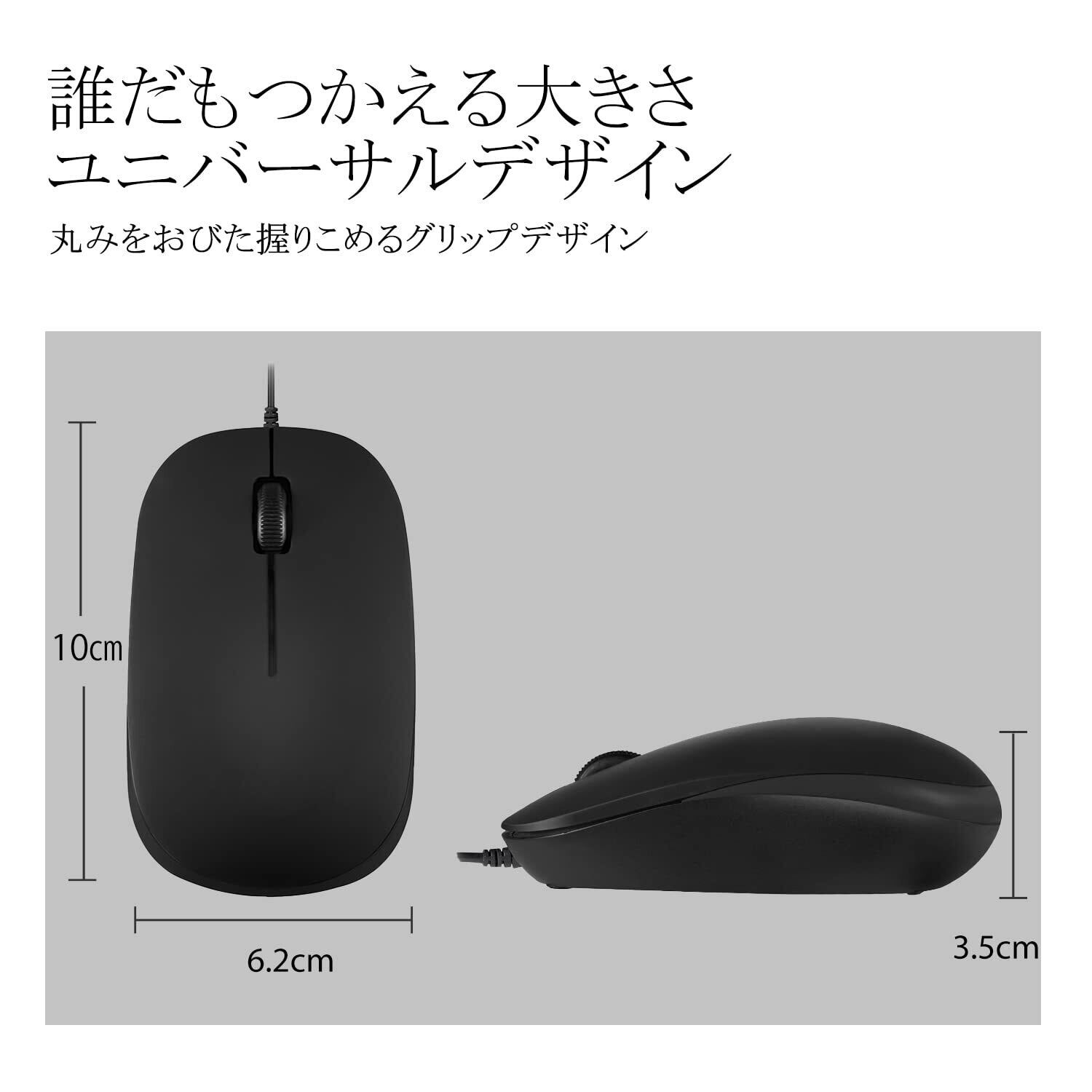 【USB Type-Cインターフェイス】USB Type-C接続の有線マウス。サイズ:10.3 x 6.2 x 3.5 cm、3ボタン式。※本製品はUSB Type-Cポートのないデバイスにはご使用になれませんのでご注意ください。