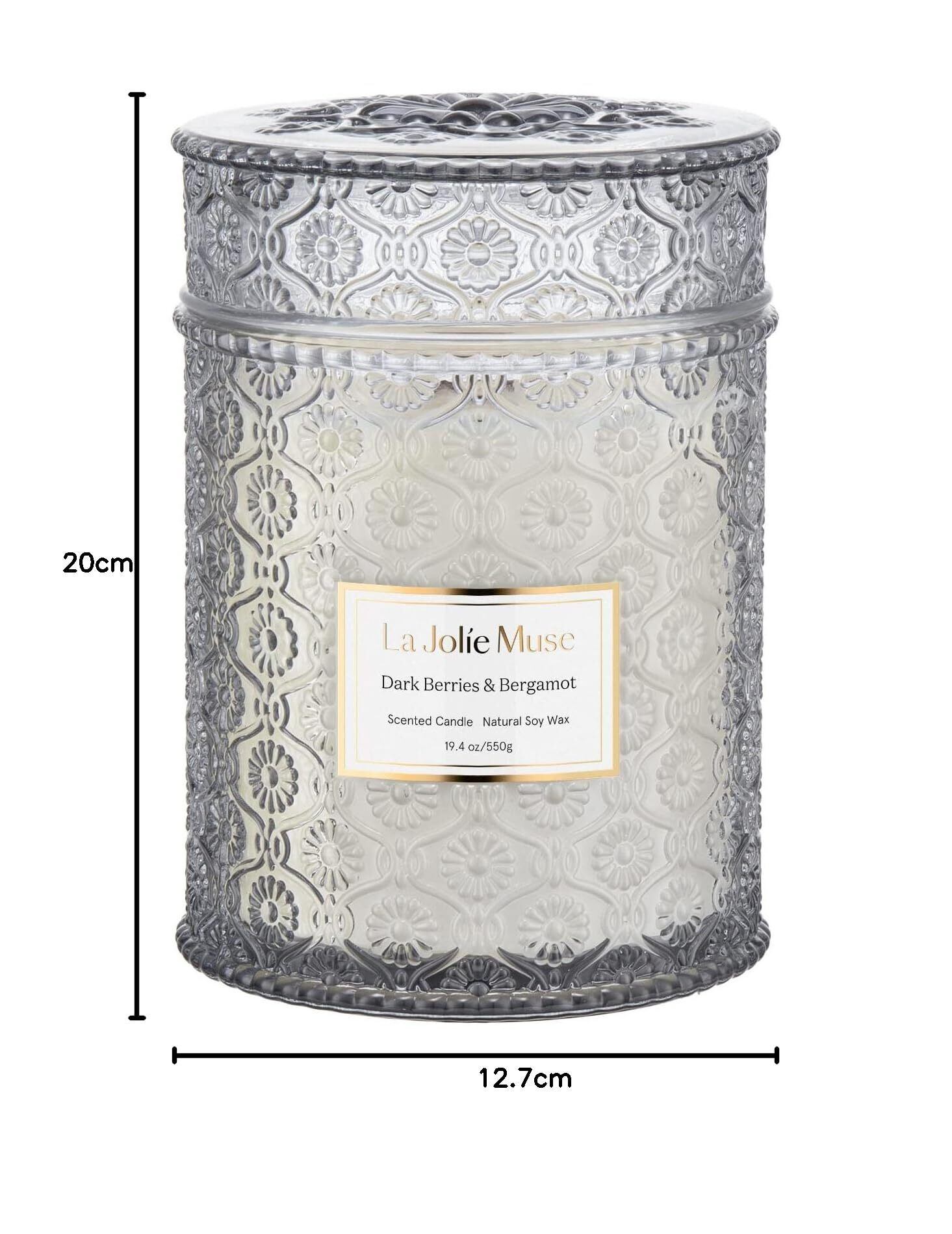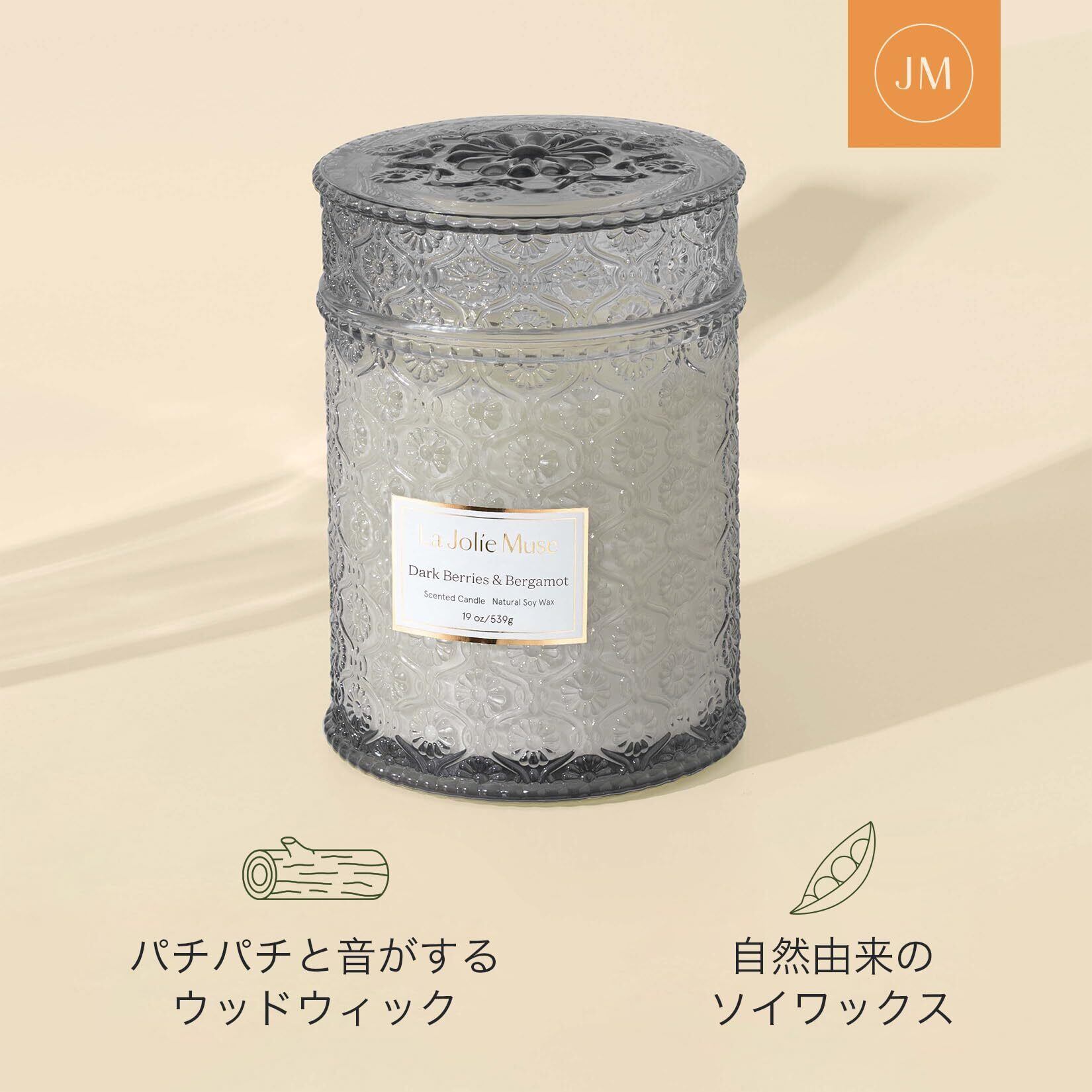 【新着商品】LA JOLIE MUSE アロマキャンドル 木芯 ブラックベリー&ベルガモットの香り 大型 おしゃれ ガラスジャー 539g 90時間 自然素材のソイワックス