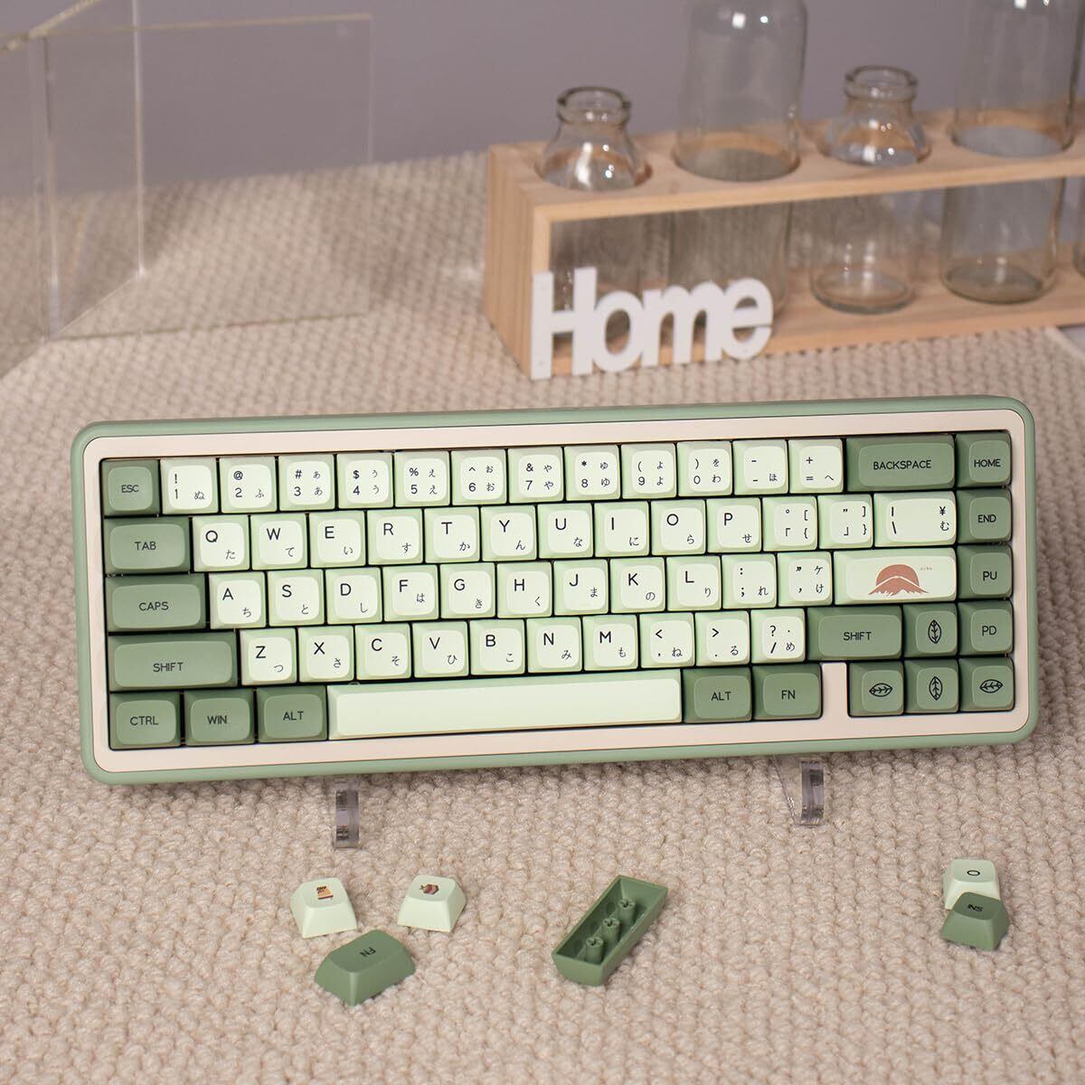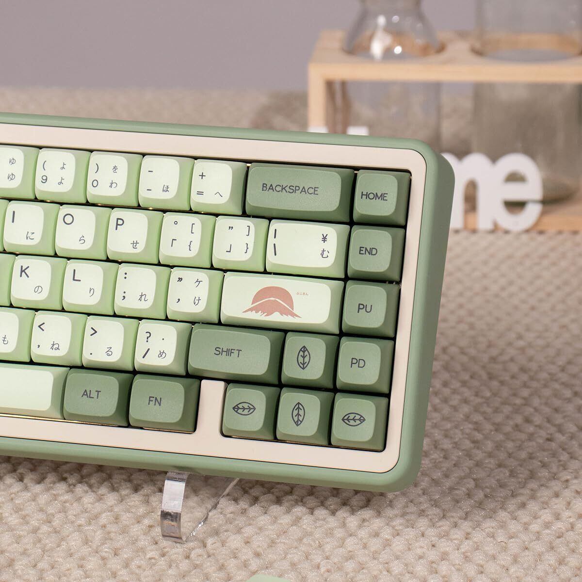 【PBT素材】これらの抹茶キーキャップは、高品質で厚みのあるPBT素材で作られています。耐久性があり、壊れにくいです。