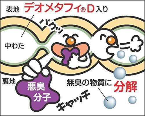 デオメタフィD:悪臭の原因となる物質に対し、繊維の中のデオメタフィDが消臭性能を発揮。ニオイの元になる菌の抑制するので、保管中のタオルの臭い対策になります。