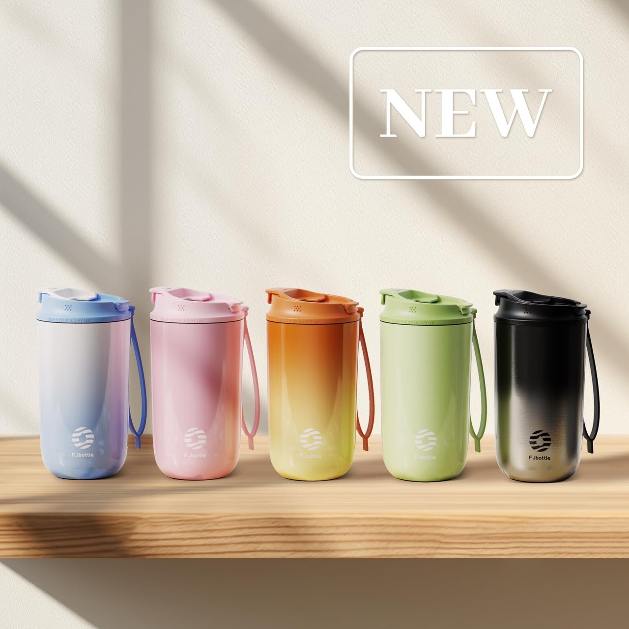 FJbottle 水筒 450ml 真空断熱 マグボトル(ストラップ付き) 2ウェイボトル 直飲み ストロー コップ飲み 保温 保冷 洗いやすい 広口 ステンレスボトル ストロースポンジ付き 女の子 男の子 おしゃれ 大人 子供 ピンク