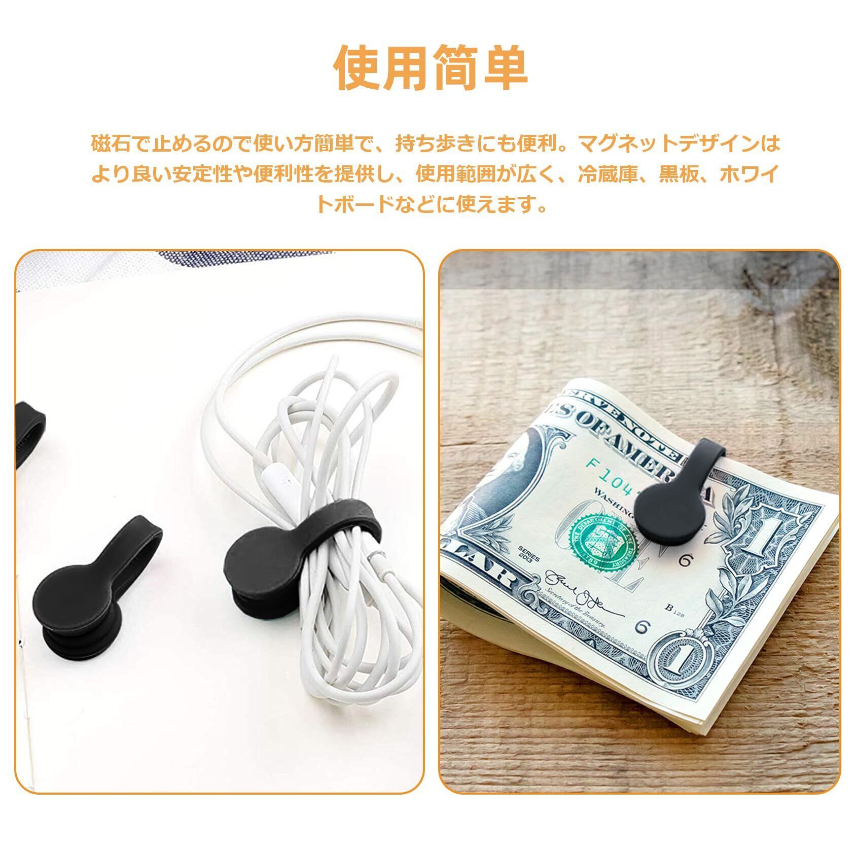【多機能】 ケーブルの整理だけではなく、写真、付箋、コイン、しおりなどを挟んたり、キーリング、食品袋止め、マグネットなどとして使えます。様々な場面で活躍します。