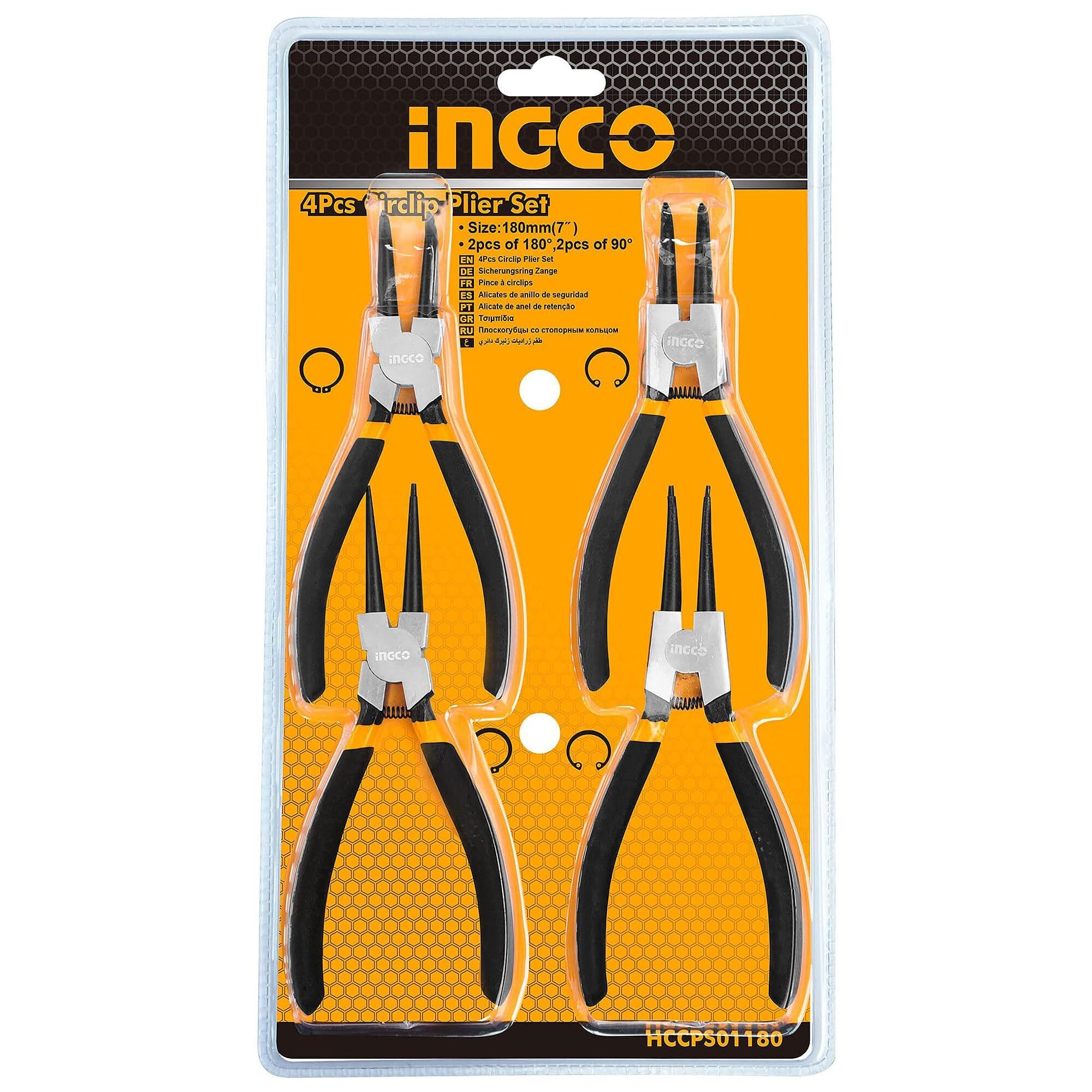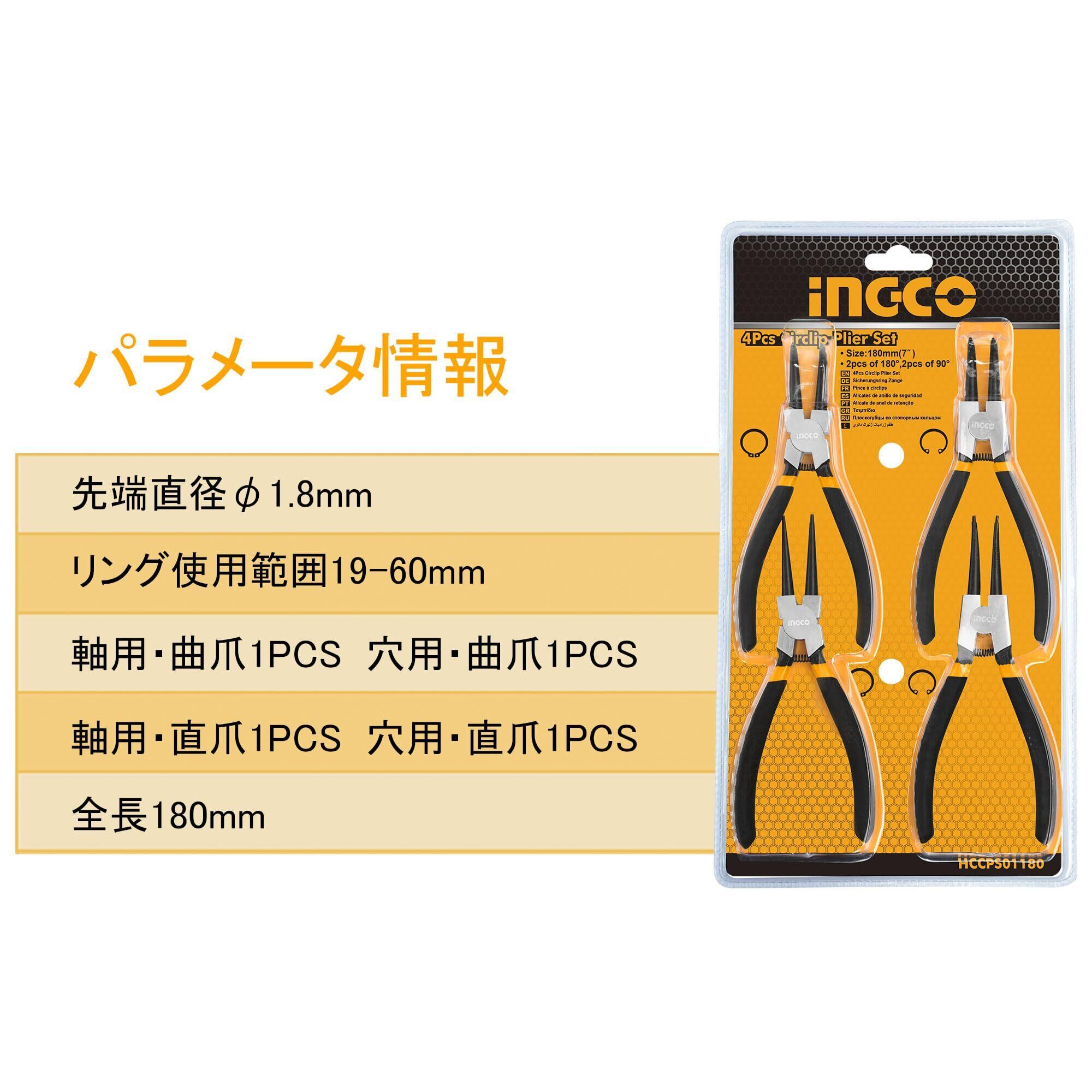 INGCO スナップリングプライヤー 4本組 先端直径φ1.8mm 全長180mm HCCPS01180