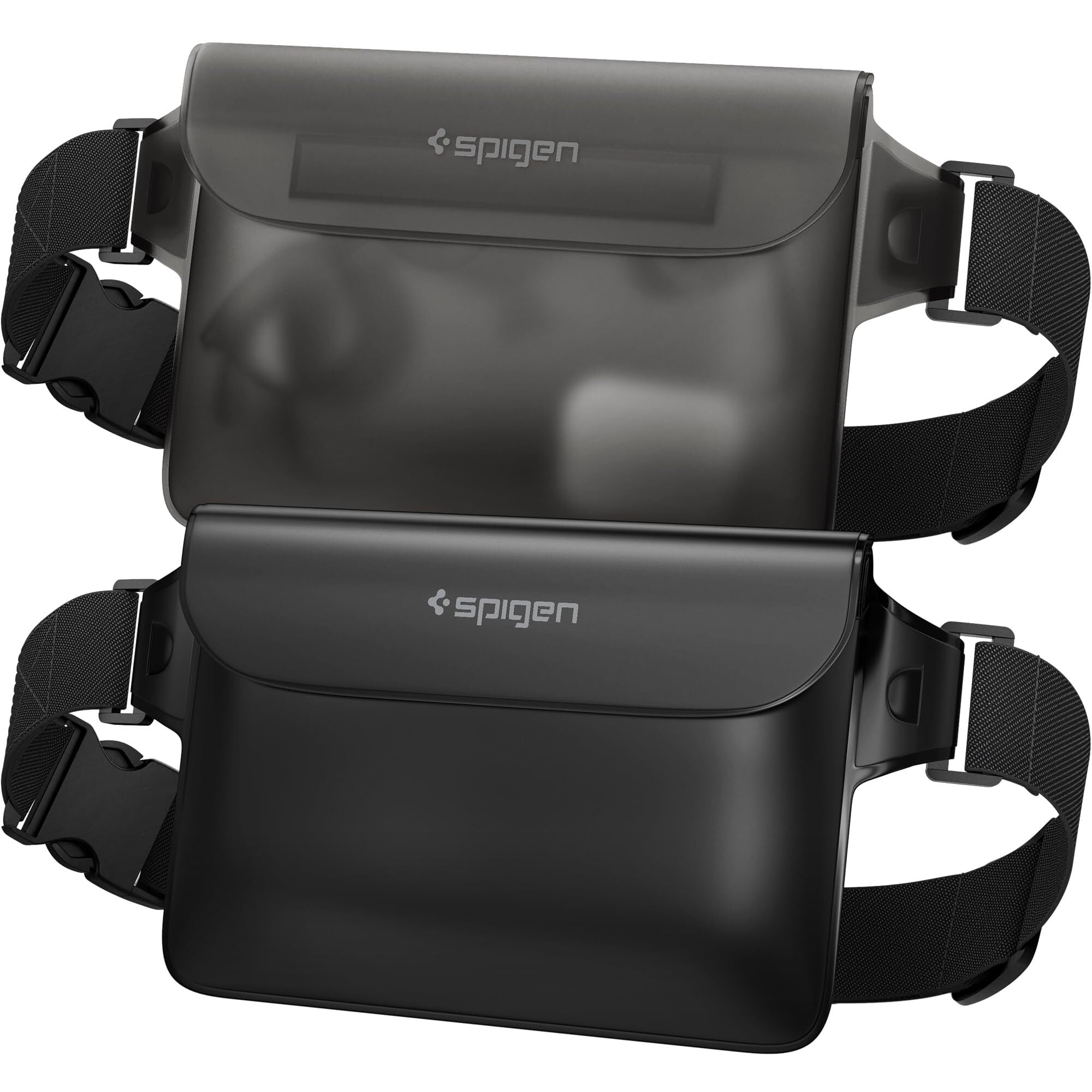 Spigen 完全防水 ポーチ ケース 小物 2個セット IPX8認証 海 プール アウトドア スマホ 三重チャック ベルクロ PVC 大容量 ウエストポーチ 防水バッグ A620 AMP04531 (ブラック)