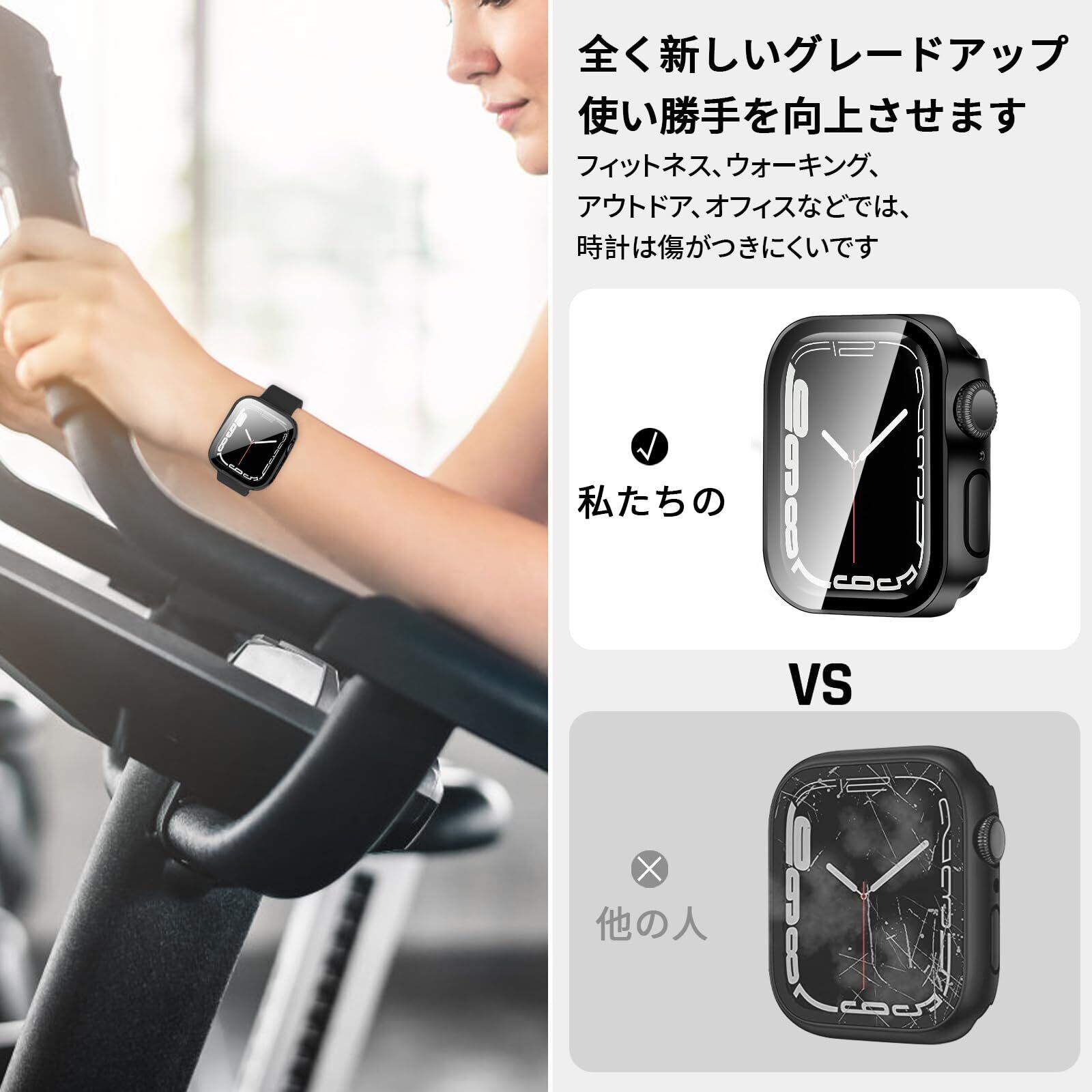 BELIYO 対応 Apple Watch ケース Series 9/8/7 41mm 防水ケース 3D直角エッジデザイン Apple Watch カバー ガラスフィルム 一体型 アップルウォッチ カバー PC素材 日本旭硝子材 二重構造 耐衝撃 アップルウォッチ ケース 全面保護 高耐久 高透過率 装着簡単 ブラック
