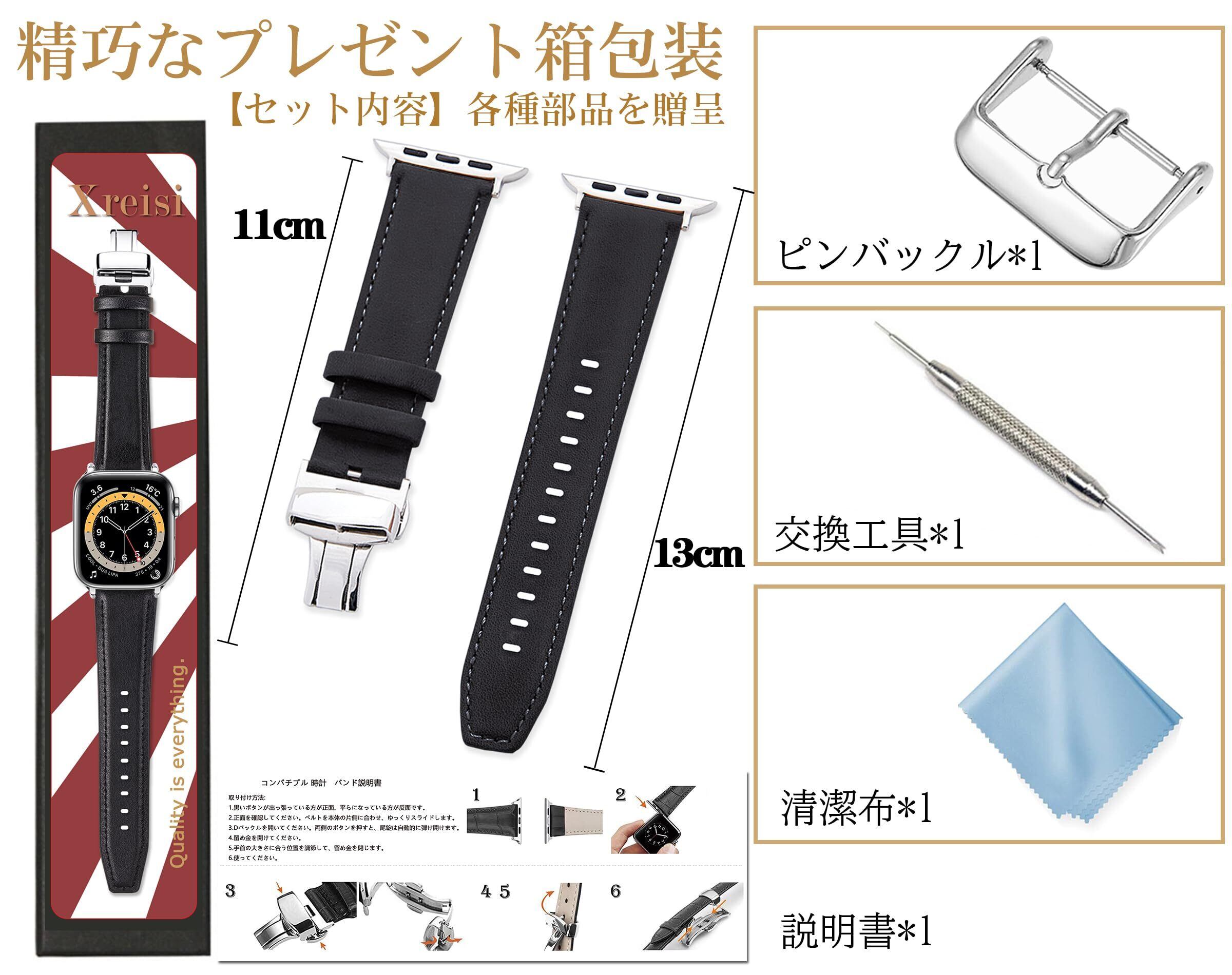 [Xreisi] コンパチブル apple watch バンド44MM 45MM 46MM 49MM 本革/ビジネス用 アップルウォッチ ベルト46mm レザー プッシュ式 Dバックル/ピンバックル手作りApple Watch Ultra2/1,Apple Watch Series10/9/8/7/6/SE/5/ 4に対応(44mm/45mm/46mm/49mm, Xr-015ブラック)