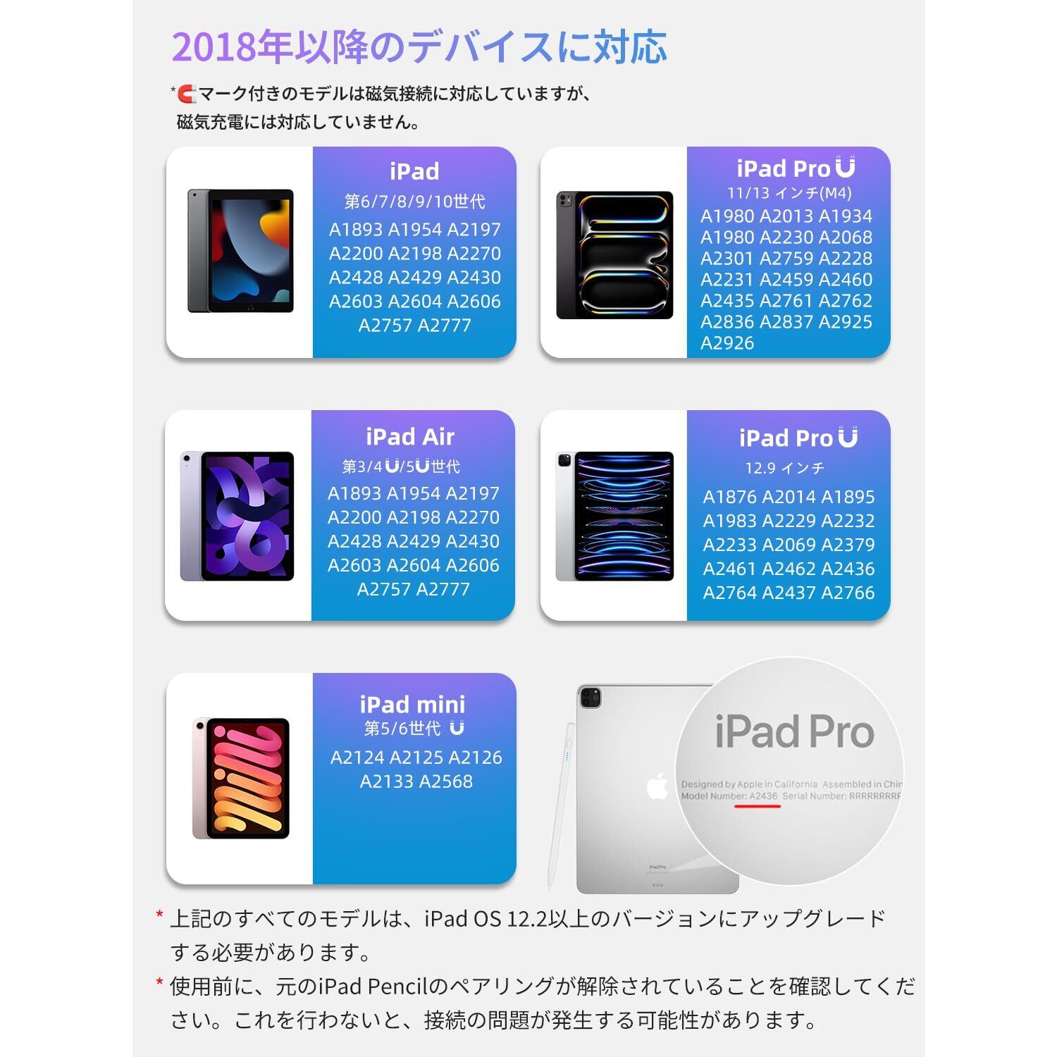 【2018年以降iPad専用スタイラスペン】 GLUBEE iPad ペンシルは2018年以降のiPadモデルに完全対応:iPad第6/7/8/9/10/11世代、iPad Air第3~7世代、iPad Pro 11型全世代、iPad Pro 12.9型第3/4/5/6世代、iPad mini第5/6世代、iPad Pro 13インチ/11インチ型(M4)、iPad Air 13インチ/11インチ型(M2)など。iPad 第10世代 ペンとしても最適(※必ず対応機種を確認の上ご購入ください)。