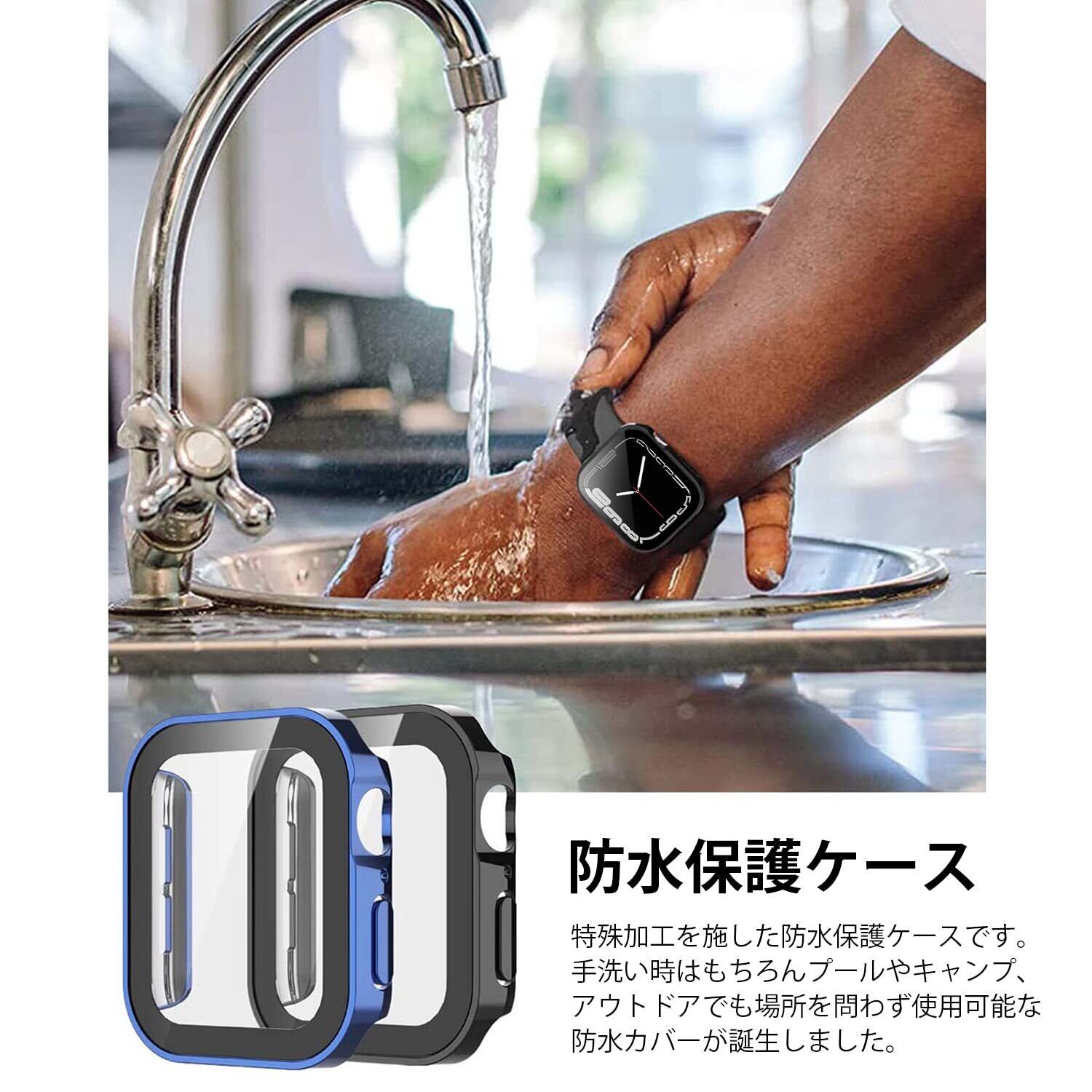 TALENANA for Apple Watch防水ケース 45mm 44mm 41mm 40mmアップルウォッチ 用 保護ケース 強化ガラスフィルム Series 7/6/SE/5/4 一体型 3D直角エッジ新デザイン メッキ加工 PC素材 高タッチ感度 全面保護 衝撃吸収 取付簡単 (Series 6/SE/5/4,44mm,ブラック)