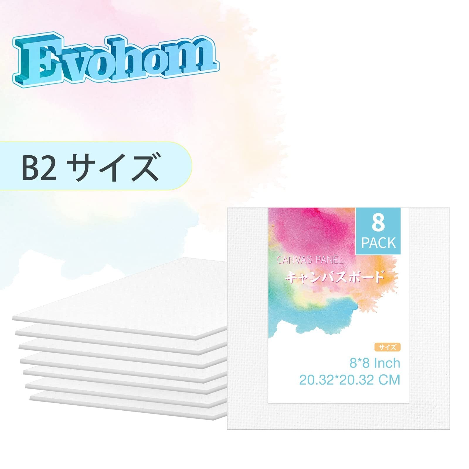 Evohomキャンバスボード B2サイズ 8*8インチ(約20.32*20.32cm)正方形 キャンバス 油絵 アクリル ペインティング用 中目 ボールドキャンバス 絵画ボード キャンバスパネルボード 画材 貼りキャンバス 油彩 キャンバス絵具 絵画用キャンパス アクリル絵具用イラストボード 画布 イラスト作成ボード 包み張り 水彩画セット 綿100% 持ち運び便利(8枚/セット)